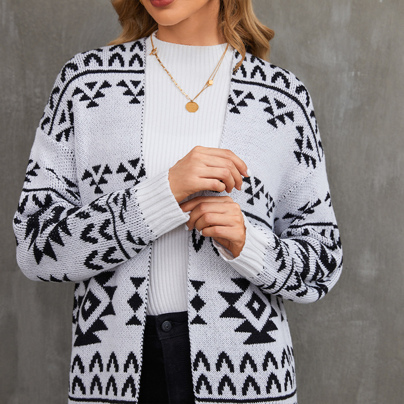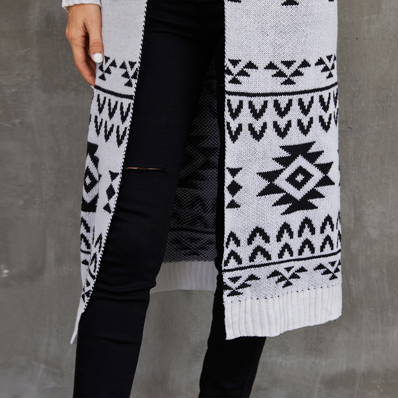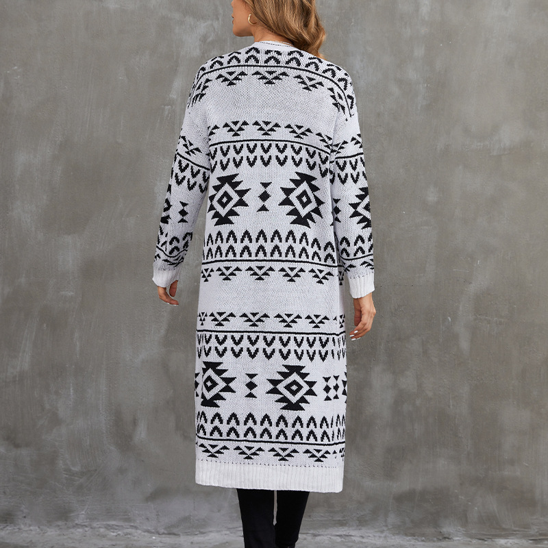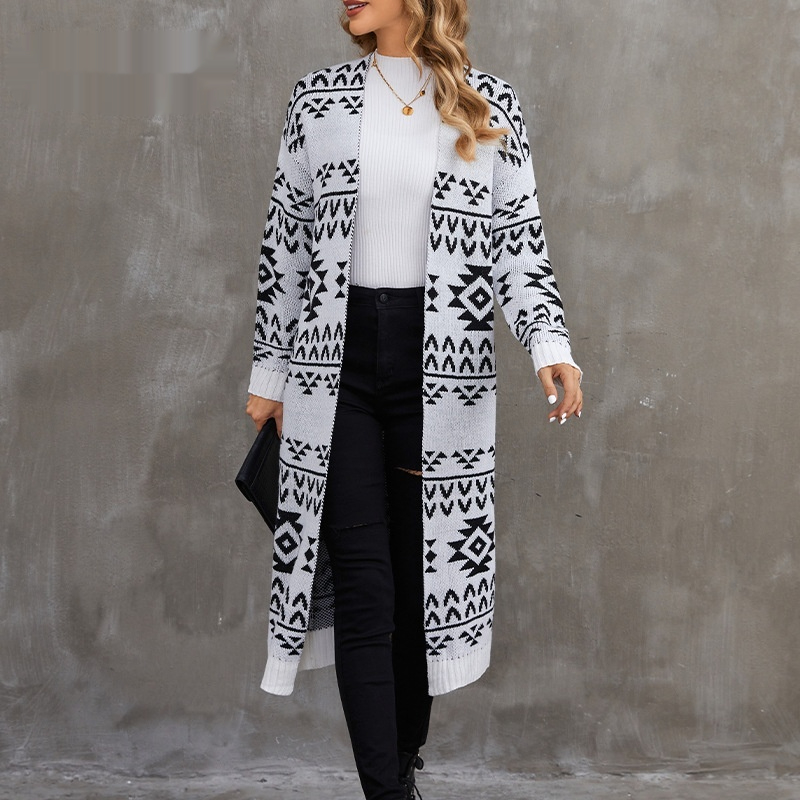 Jacquard Knit Sweater Jacket Casual Knitted Long Cardigan