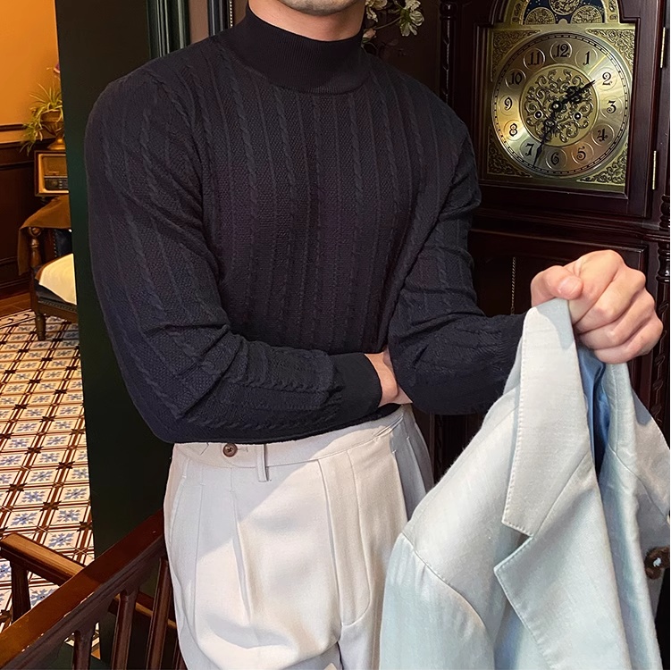 Jacquard Long Sleeve Half Turtleneck Slim Sweater