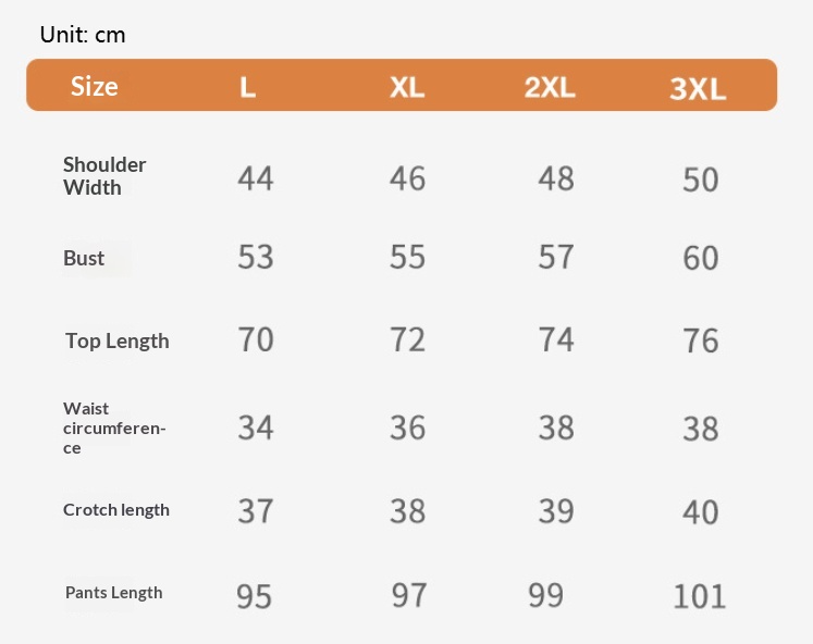 Sizes: L (50–62.5 kg), XL (63–75 kg), 2XL (75.5–85 kg), 3XL (85.5–95 kg)
