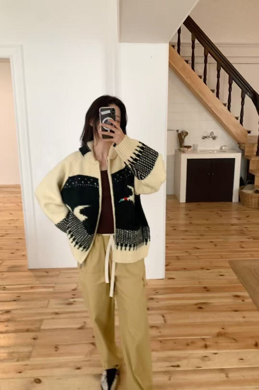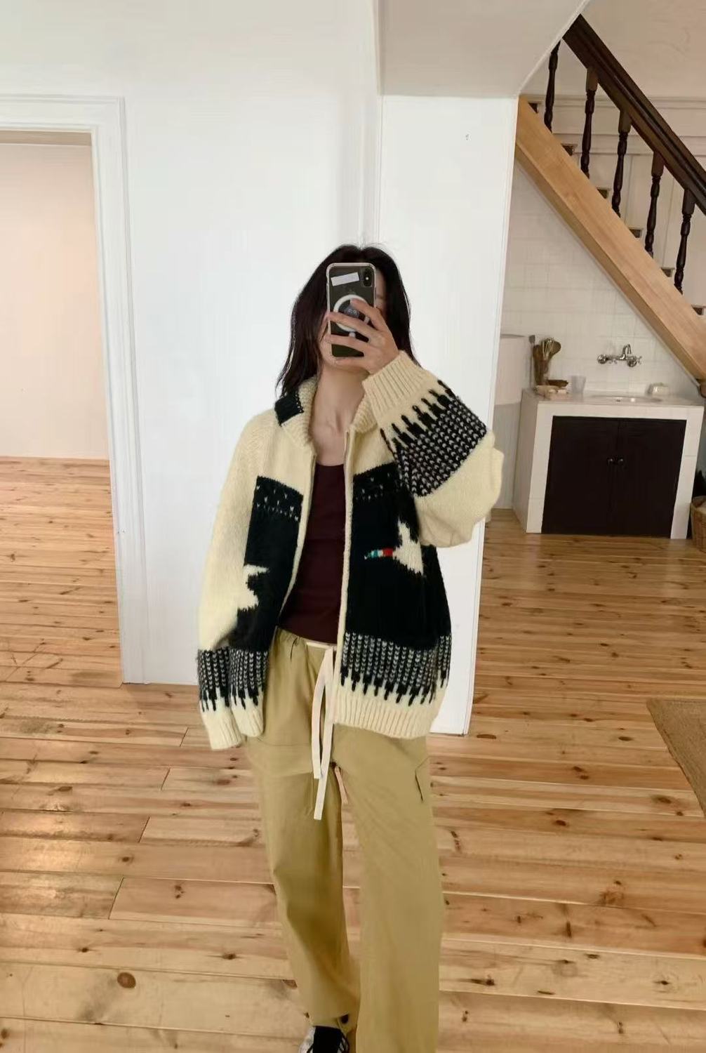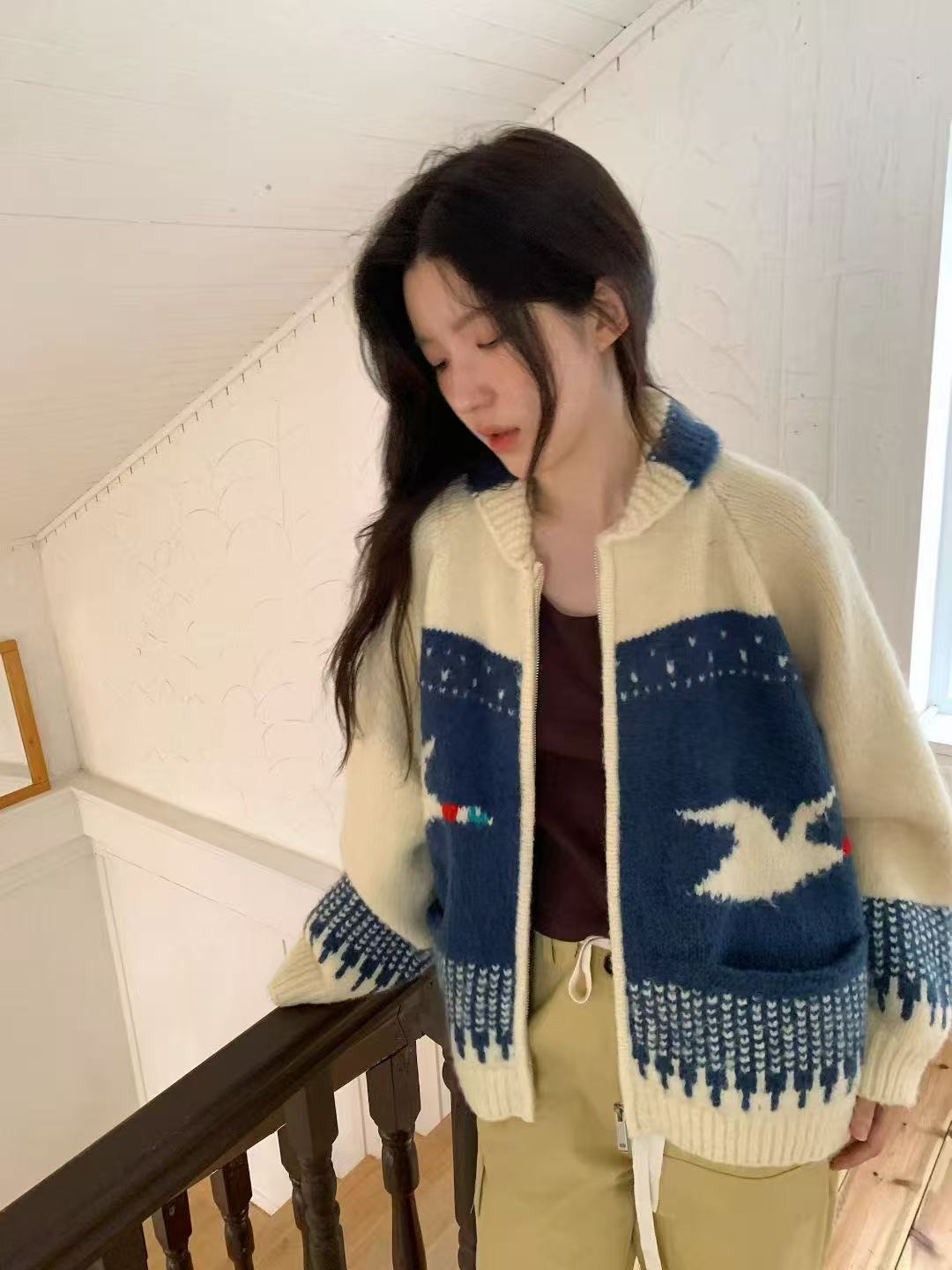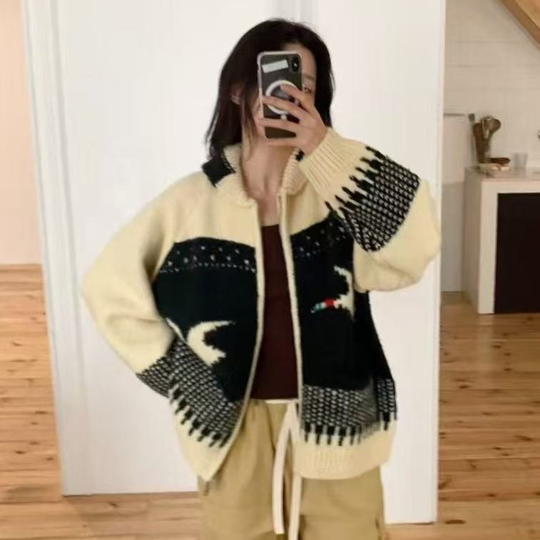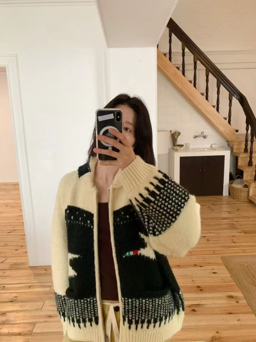 Jacquard Soft And Sticky Long-sleeve Knitted Cardigan Sweater For Women, Slimming