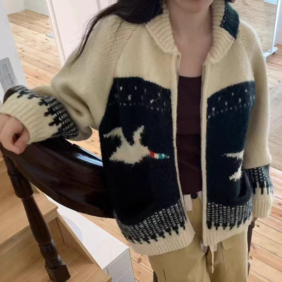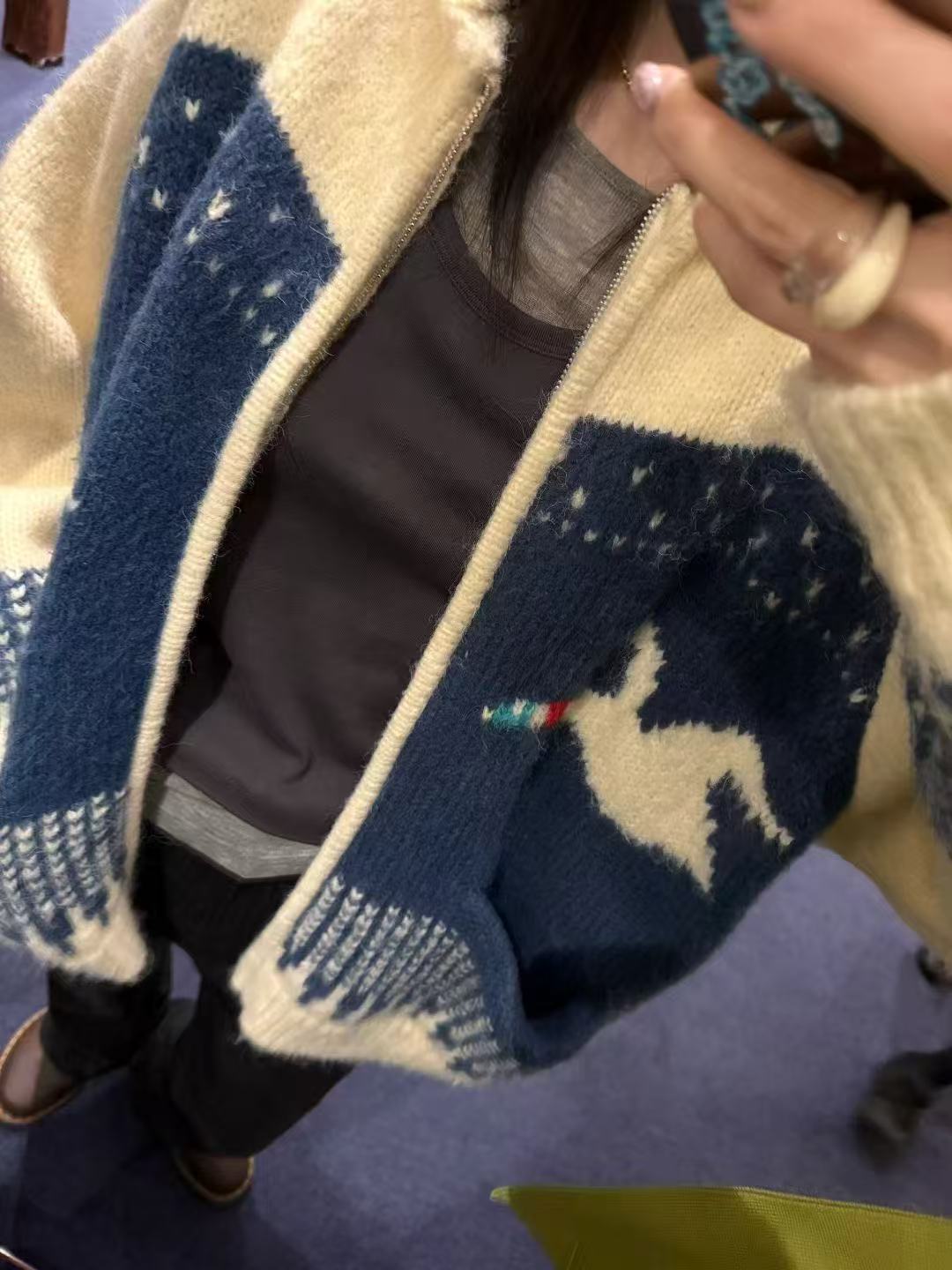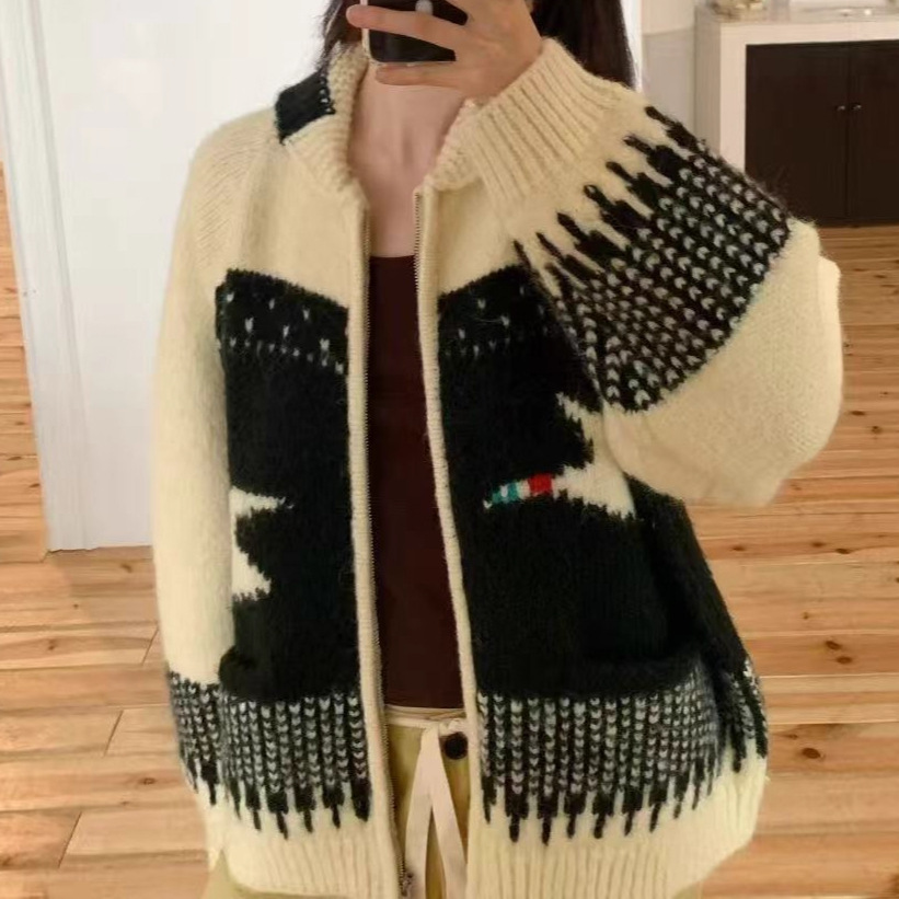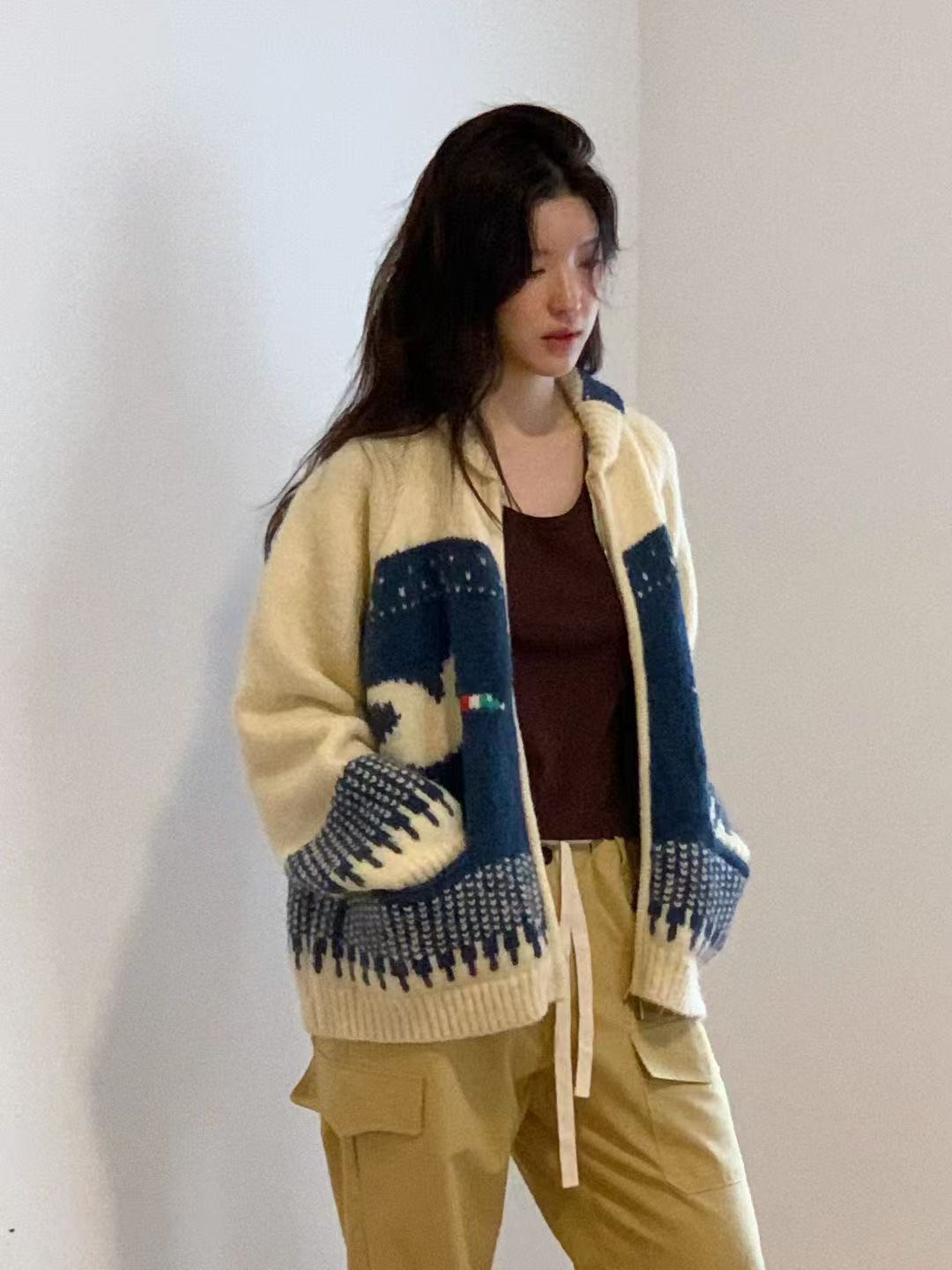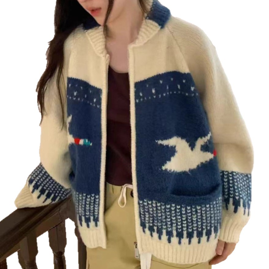 Jacquard Soft And Sticky Long-sleeve Knitted Cardigan Sweater For Women, Slimming