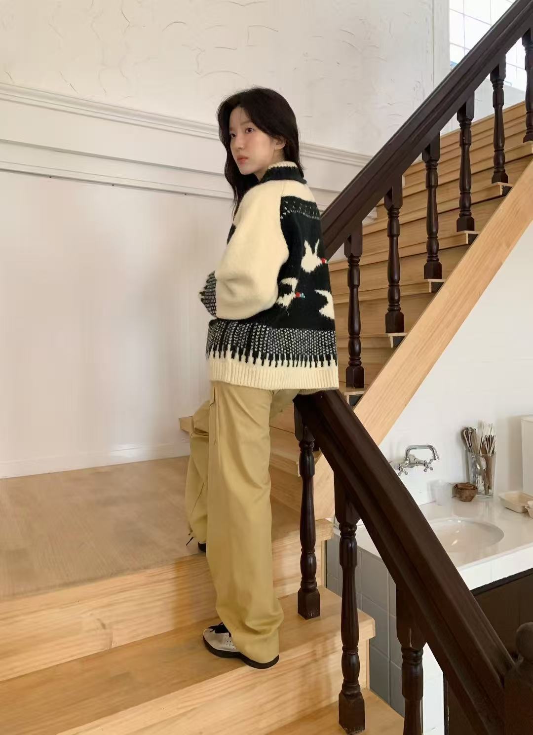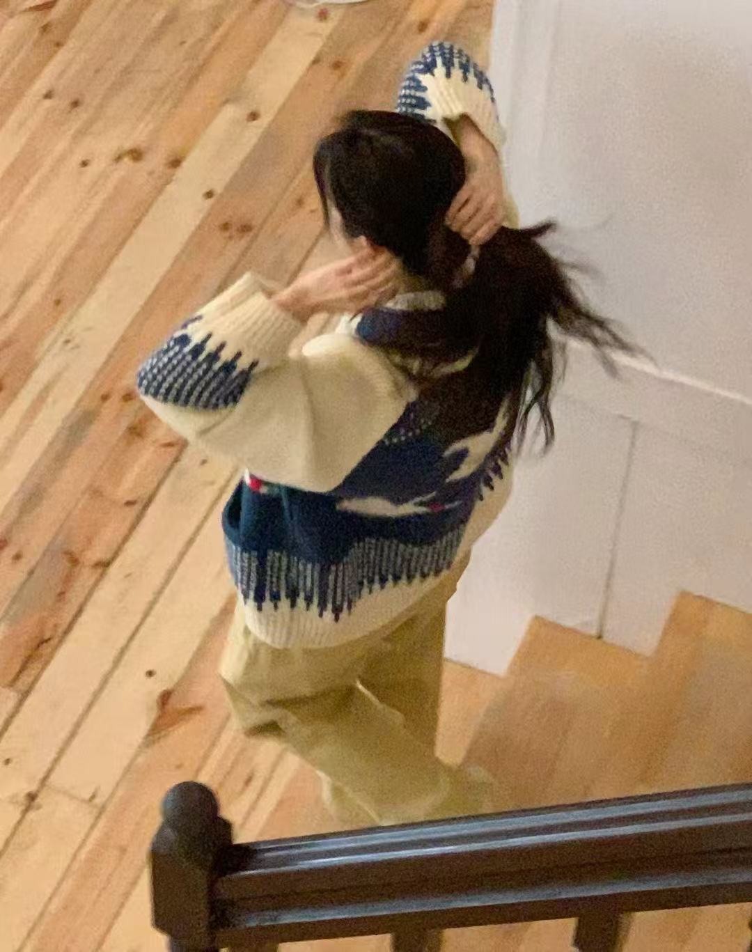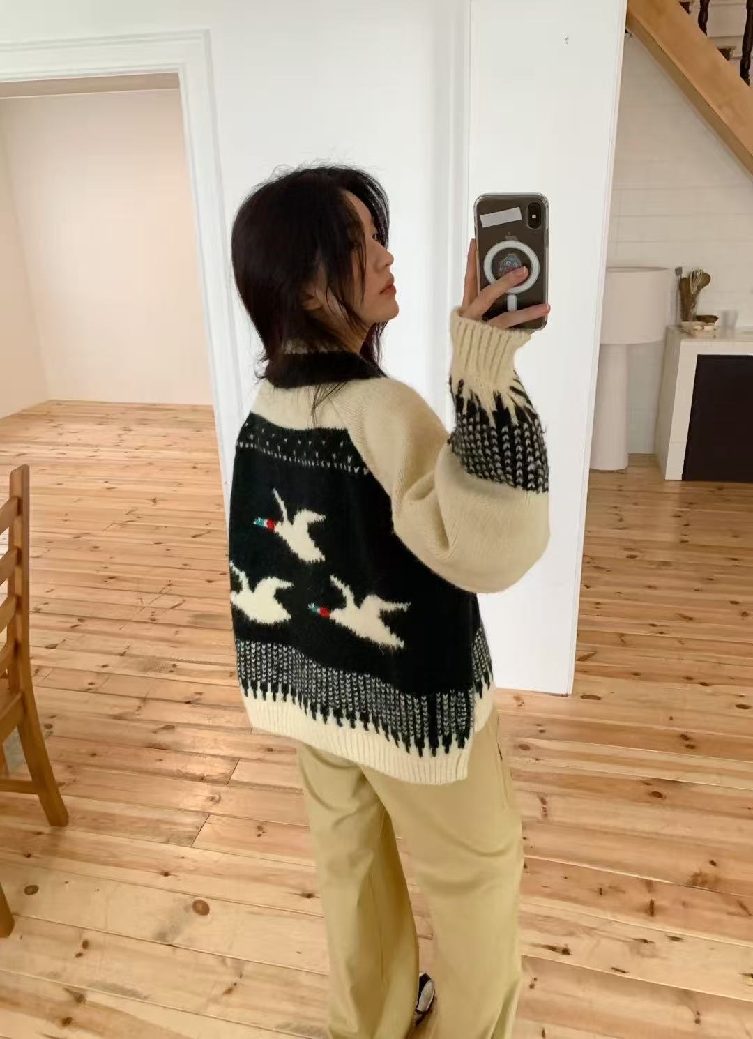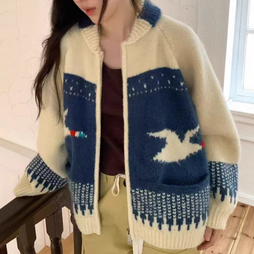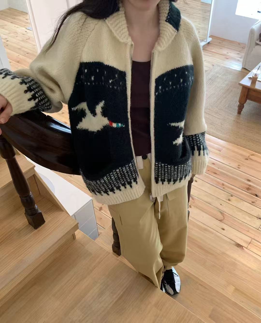 Jacquard Soft And Sticky Long-sleeve Knitted Cardigan Sweater For Women, Slimming