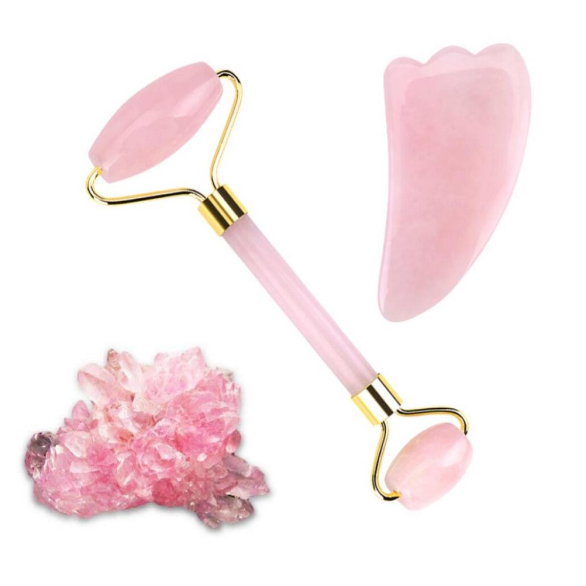√ Dual Sides Rose Quartz Roller- The big roller is ideal for neck, chin, cheeks, and forehead while the smaller is perfect for around the eyes, nose, and lips. The roller promotes blood circulation, which can reduce puffiness and wrinkling