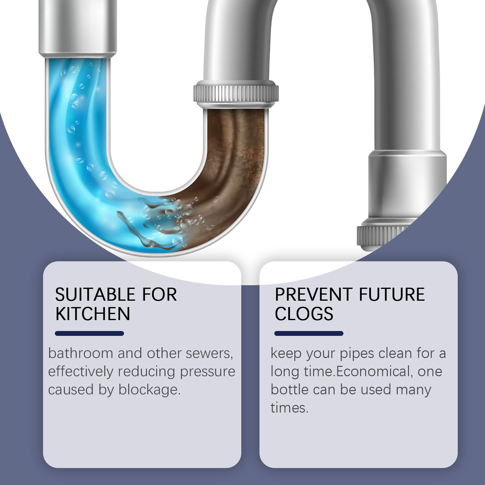 Our drain cleaning powder (boxed) contains lemon extract, chlorinated cyanuric acid salt, and surfactants. It can keep your pipes clean. Economy size, one bottle can be used multiple times. The usage is very simple: pour an appropriate amount of powder into the clogged sink or drain, wait 15-30 minutes for it to dissolve. Rinse the drain with hot water to clear the blockage. It works immediately after use, restoring smooth flow in the pipes.