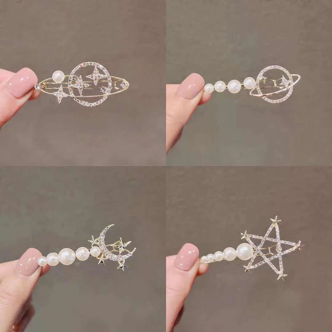Color: Japanese moon style, Japanese XINGX style, Japanese pearl Planet style, Japanese rhinestone XINGX style, Japanese moon style silver, Japanese XINGX style silver, Japanese pearl Planet style silver, japanese rhinestone star Silver, rhinestone Pearl bow gold, rhinestone Pearl bow silver, clock barrettes