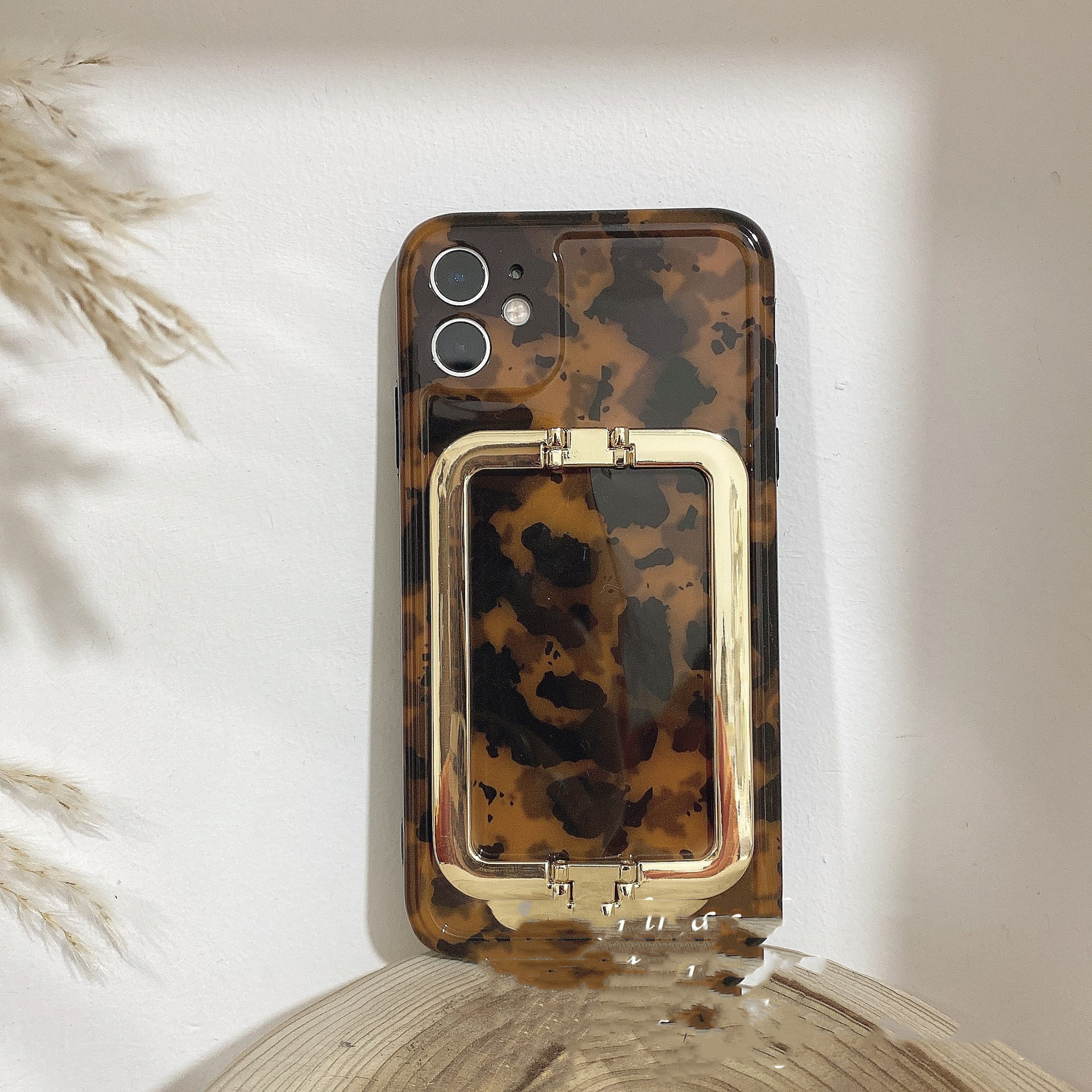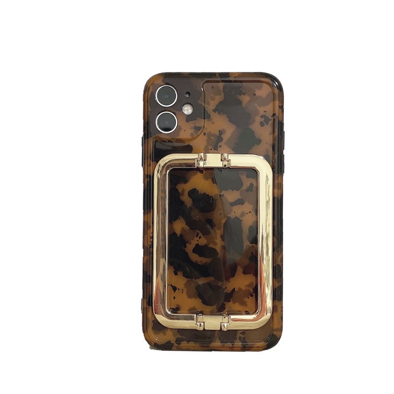 Color : Gold Square Buckle Amber Leopard