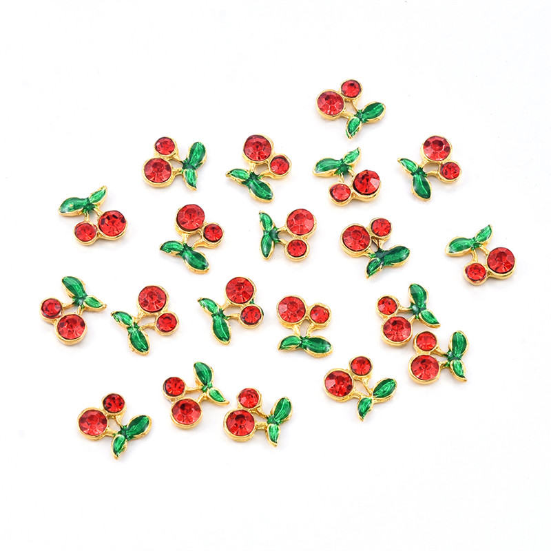 Material: alloy, rhinestoneColor: redShape: CherrySize: 5 * 6mmGender: femaleUses: suitable for manicure and pedicure