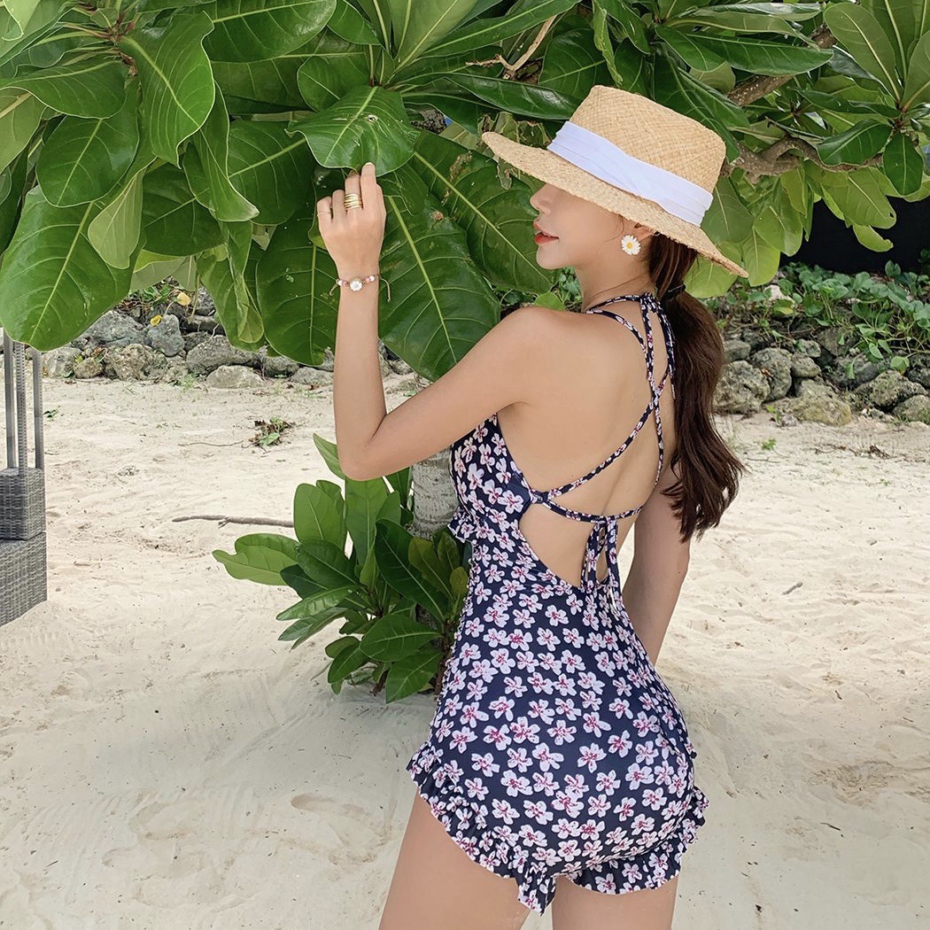 Japanese And Korean Girls' Small Daisy Backless Swimsuit