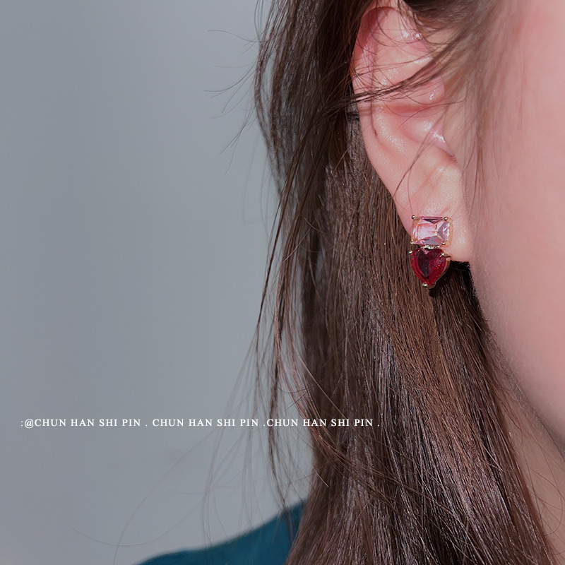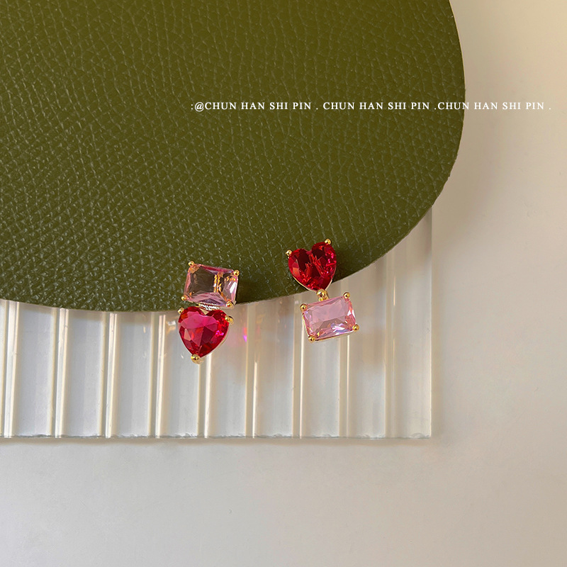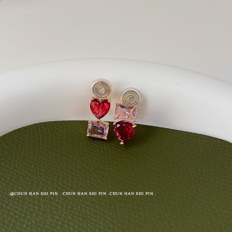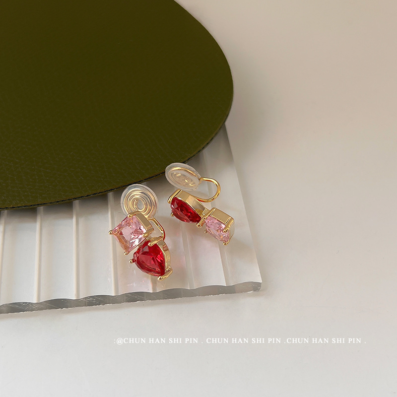 Material: Copper/Alloy/Zircon/Mosquito Coil Ear Clip 14K Gold+Pink Heart Shaped Zircon