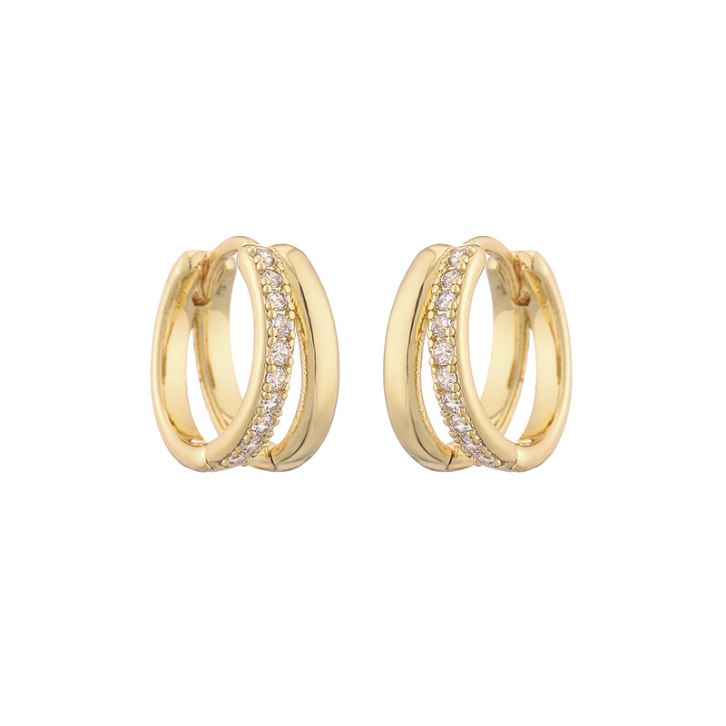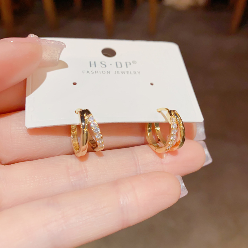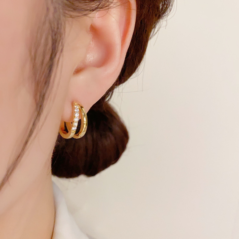 Japanese And Korean Temperamental Fashion Double Layer Hollow Zircon Circle Ear Clip