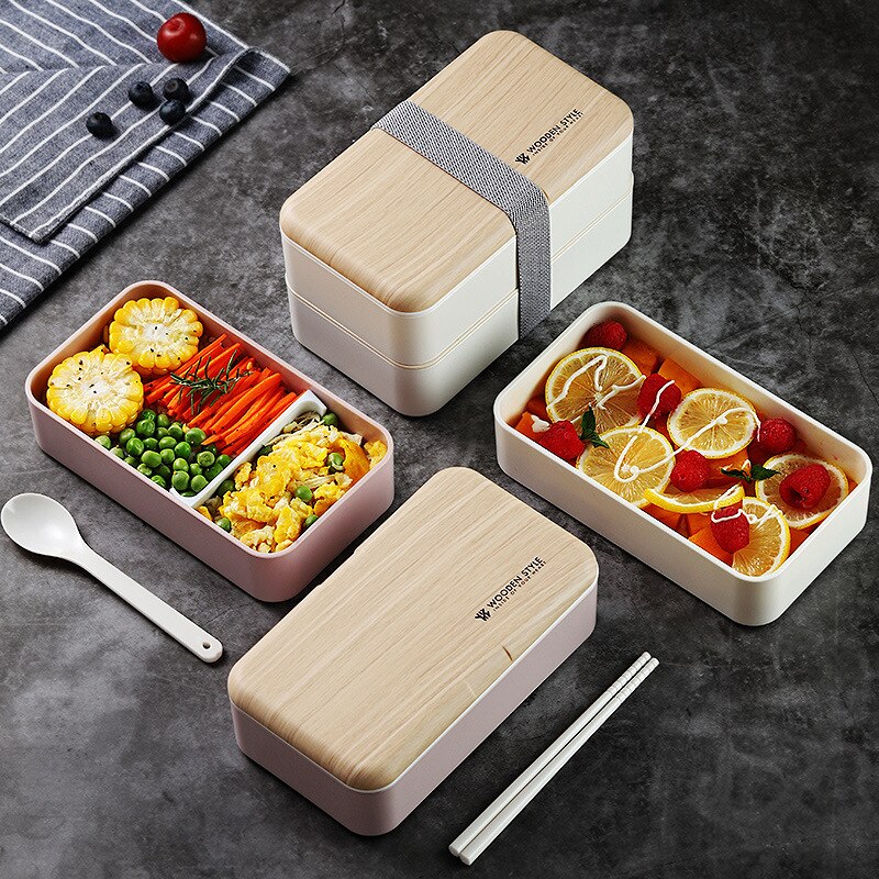 Double layered lunch box portable microwave oven heating male and female student tableware