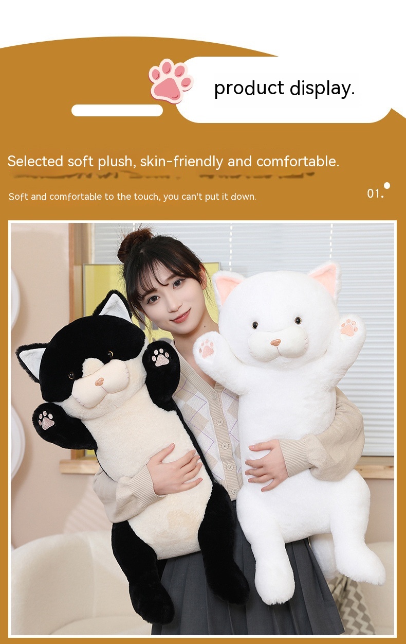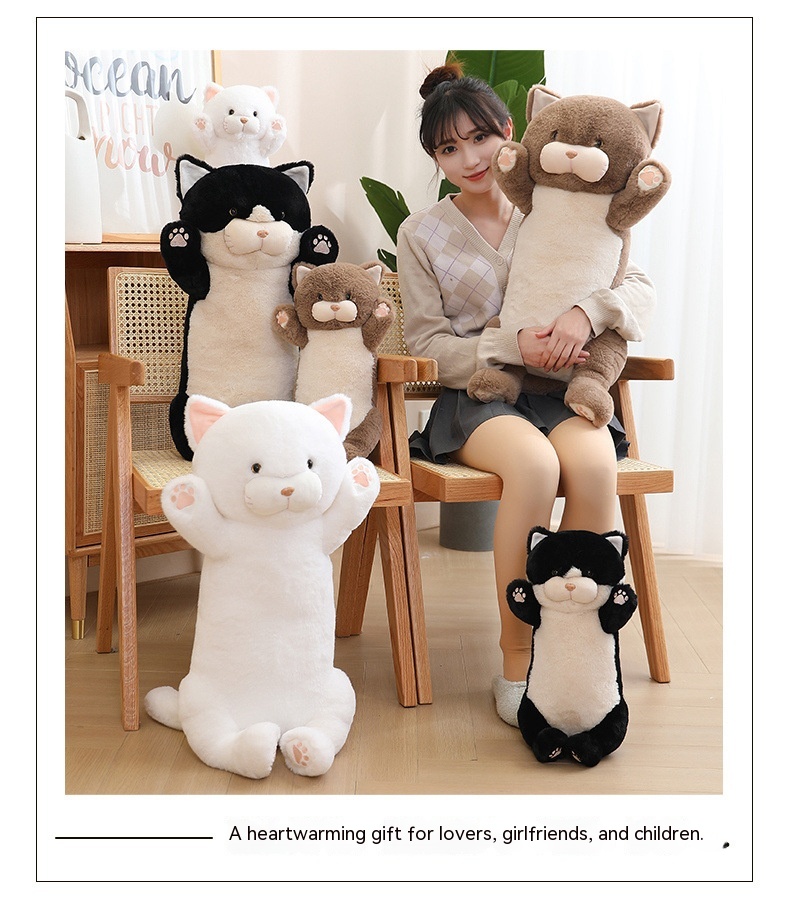 Japanese Cat Long Pillow Plush Toy Kitten Doll Ragdoll Girl's Bed Sleep Hug
