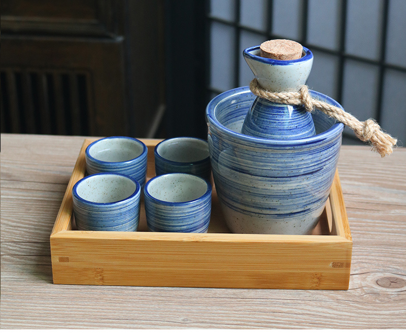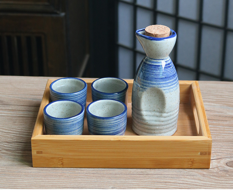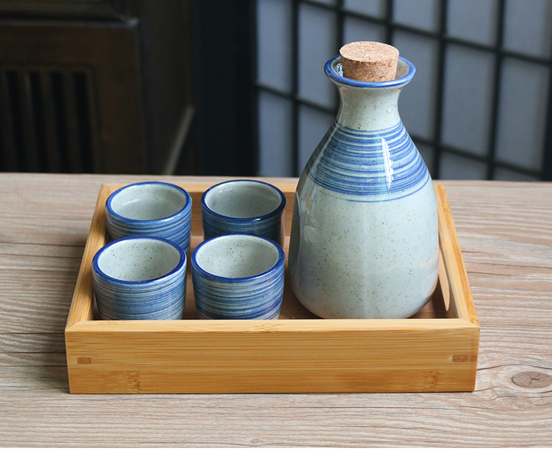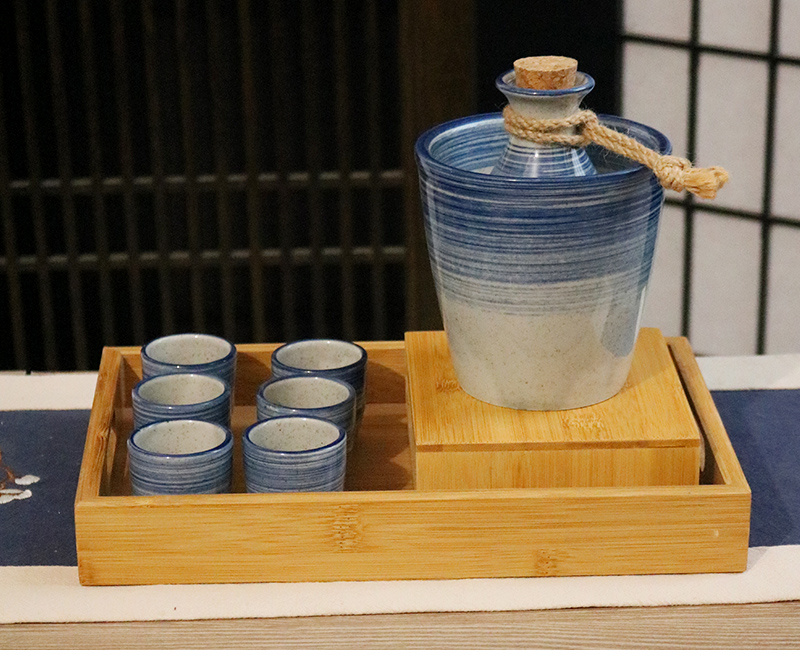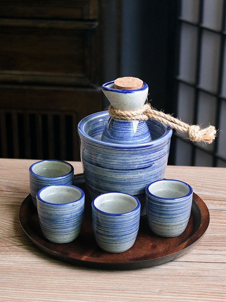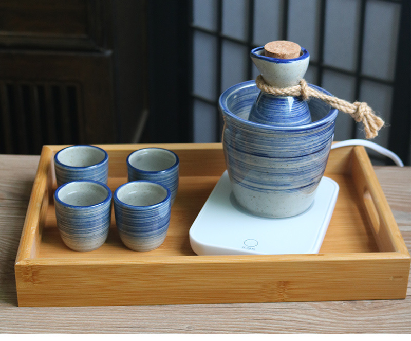 Set10: Large 1 pot 4 cups 1 cylinder + wooden tray for wine winemaker