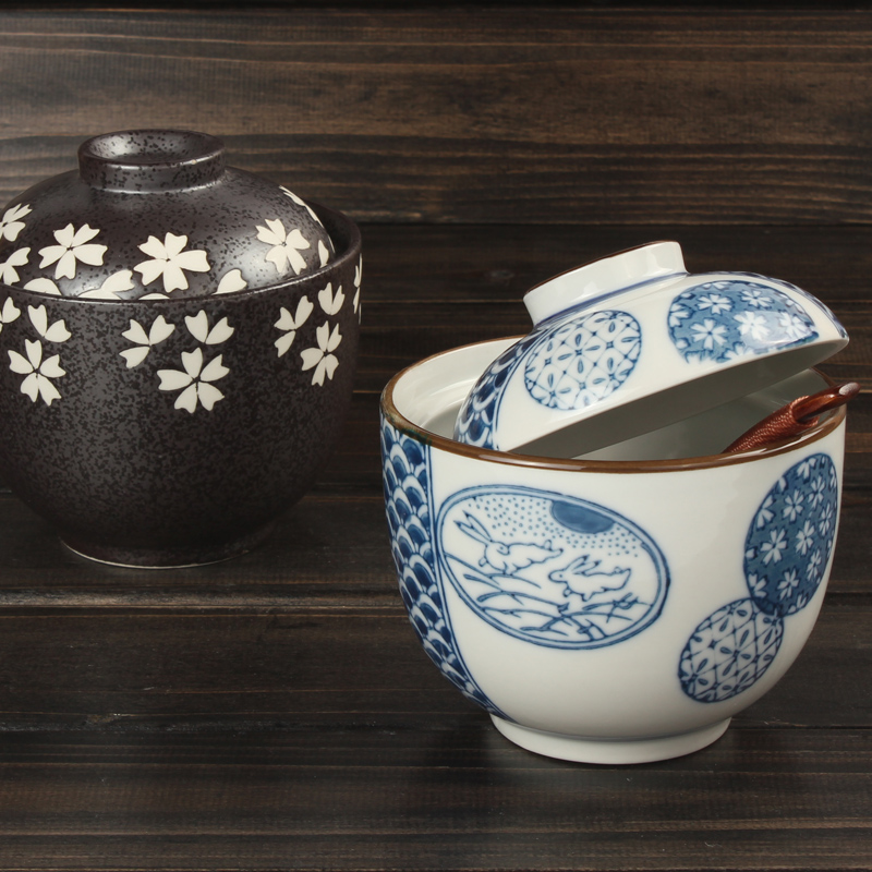Japanese Ceramic Rice Bowl With Lid Preservation Cup