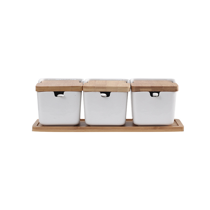 Specifications: Ceramic wooden lid seasoning jar (one pack without wooden tray)