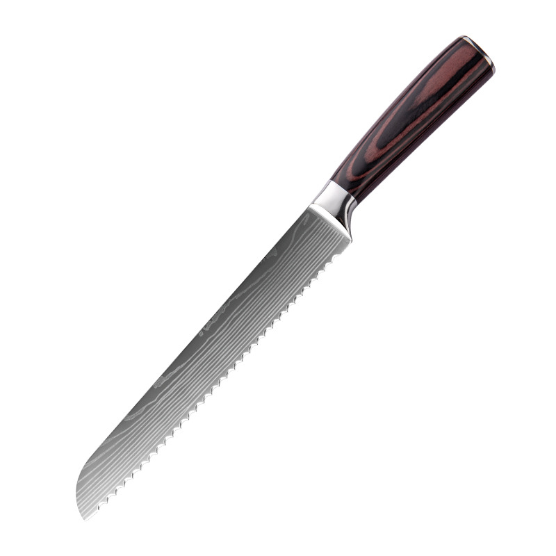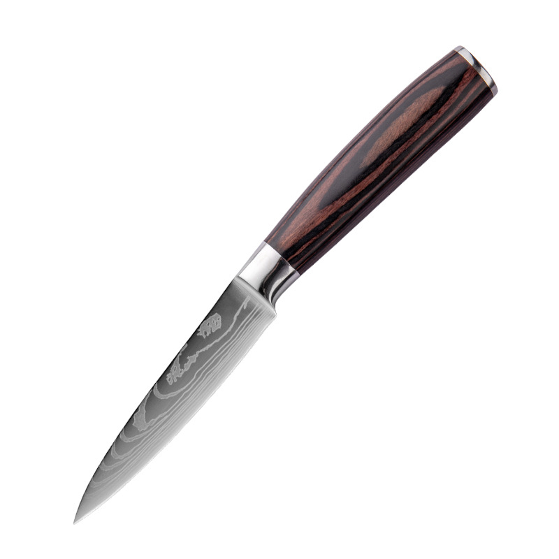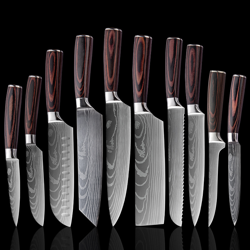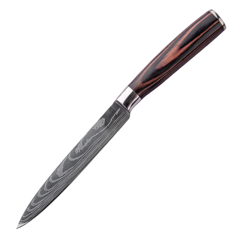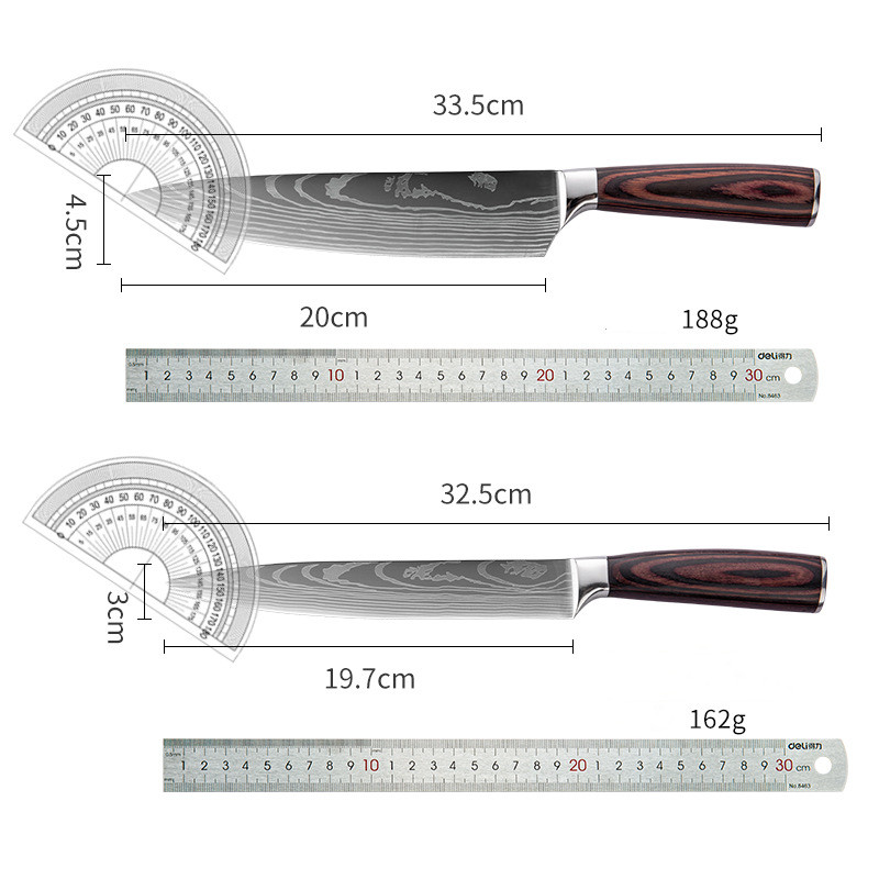 Specifications: A: 3.5 inch peel knife (paper set), B: 5 inch universal knife (paper set), C: 5 inch small Sande knife (paper set), D: 6 inch deboning knife (paper set), E :7 inch small kitchen knife (paper set), F: 7 inch Santoku knife (paper set), G: 7.5 inch cutting knife (paper set), H: 8 inch bread knife (paper set), I: 8 inch cutting Meat knife (paper set), J: 8 inch chef's knife (paper set)