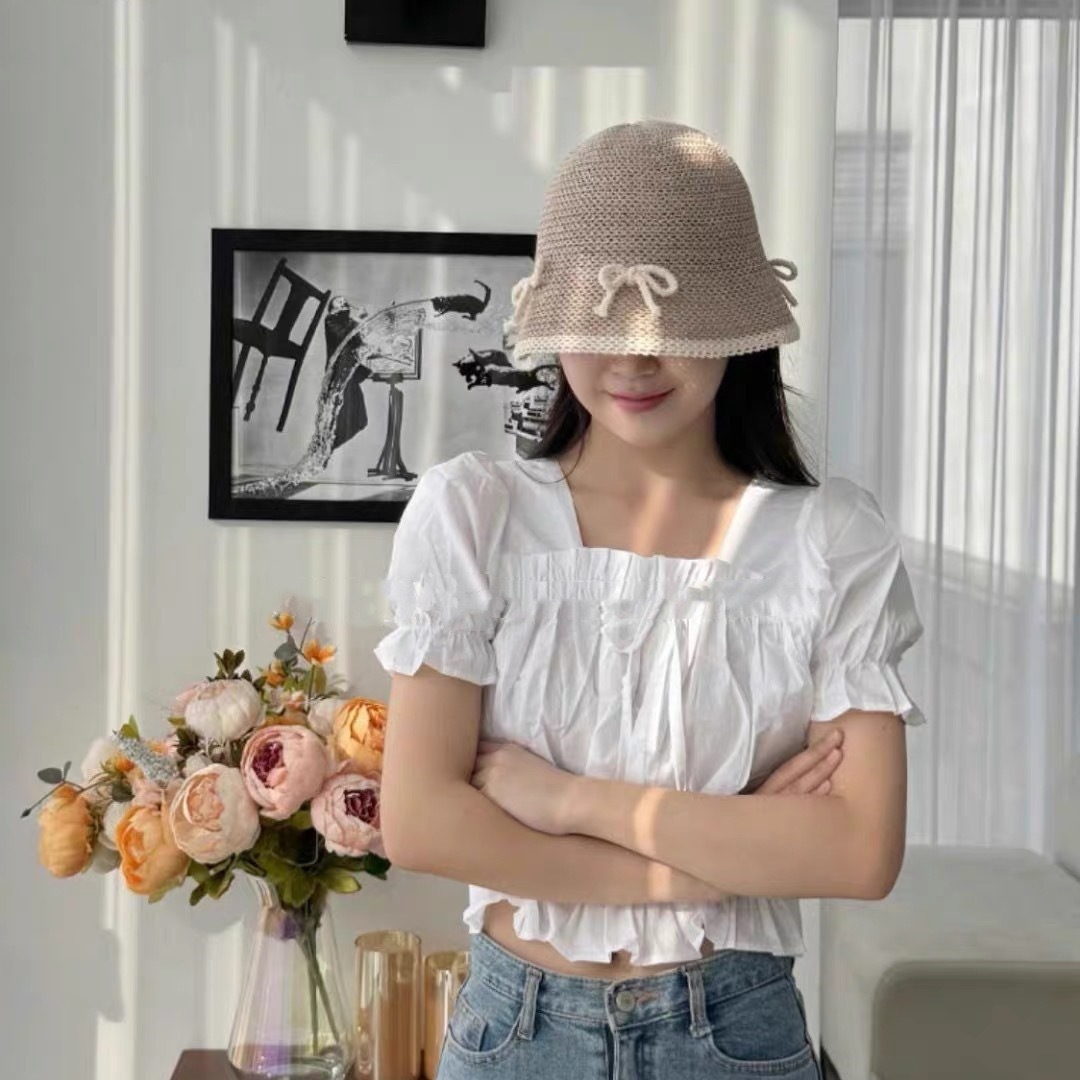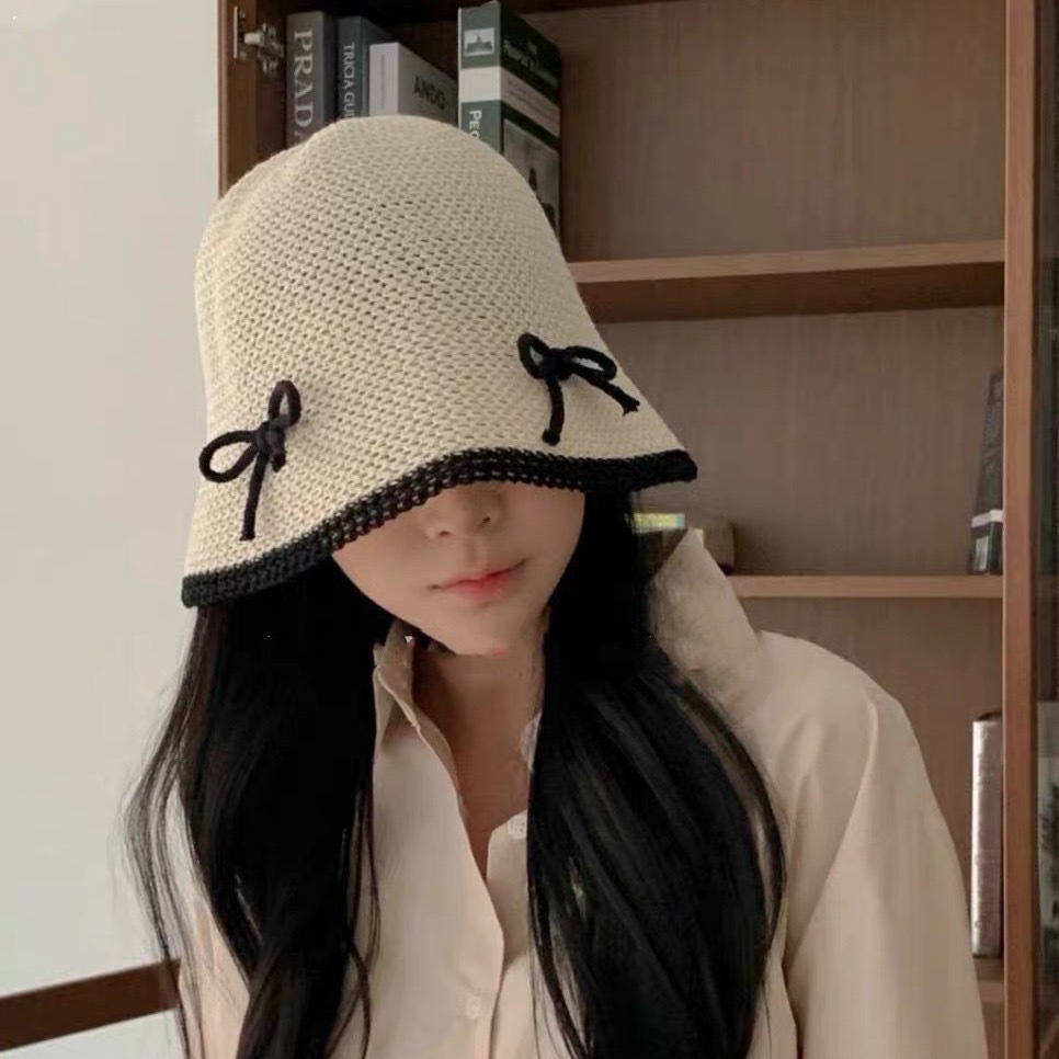 Size: M(56-58cm) hemp bow bucket hat