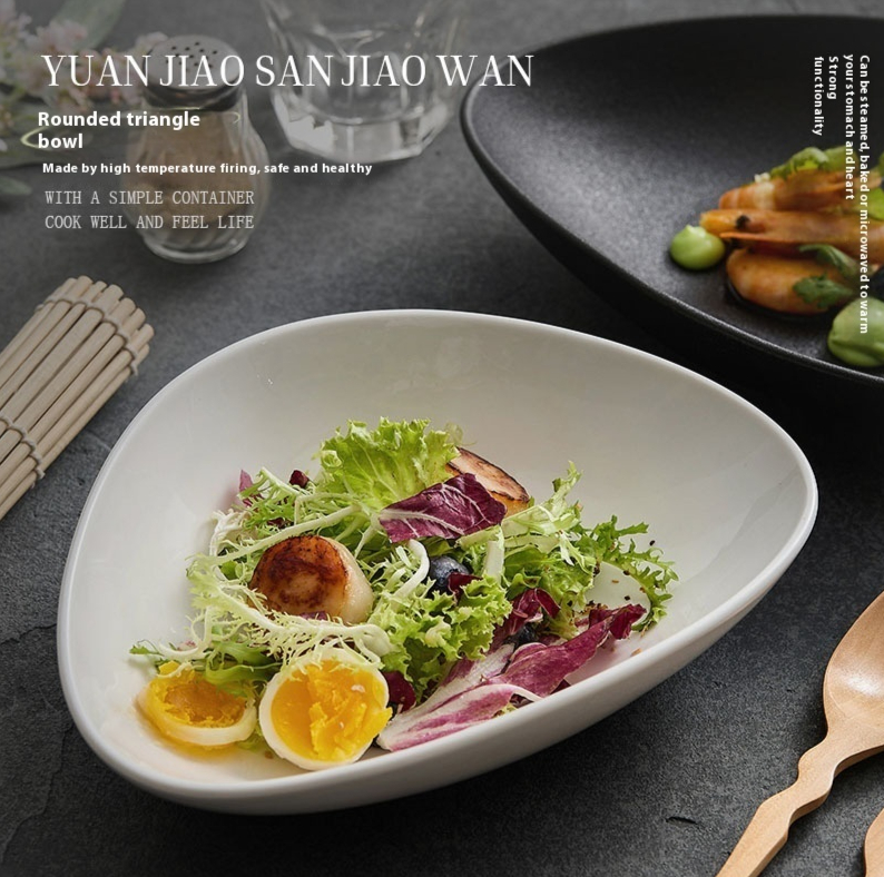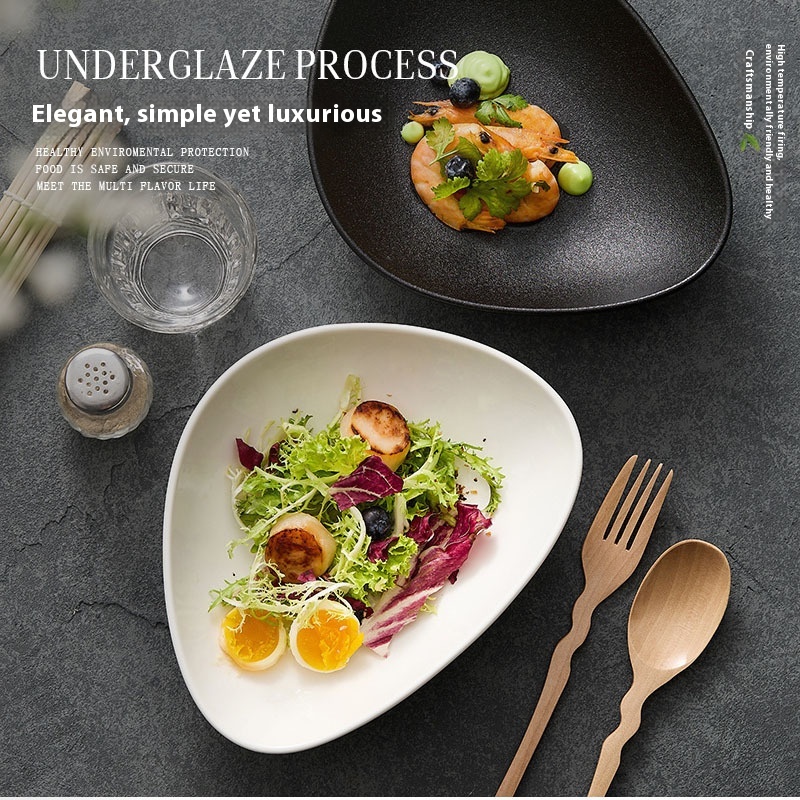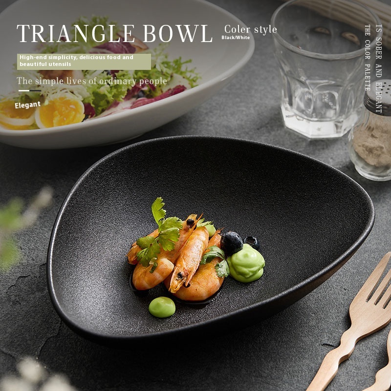 Color: 9-inch Frosted Black round triangle bowl, 9-inch bright white round triangle bowl, 8-inch bright white Petal bowl, 10-inch bright white Petal bowl, 8-inch reverse mouth Zhengde plate, 9-inch reverse-mouth Zhengde plate, 10-inch reverse-mouth Zhengde plate, Portuguese-style knife and fork gold two-piece set, Portuguese knife and fork black two-piece set, Portuguese gold main meal spoon, Portuguese black main meal spoon