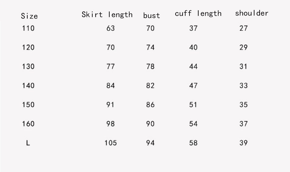 Side reference height: 110cm 120cm 130cm 140cm 150cm 160cm 165cm