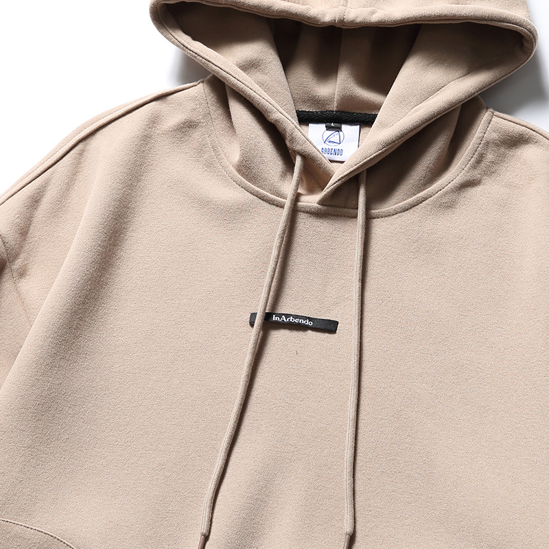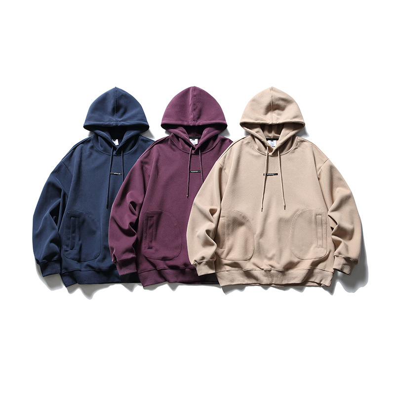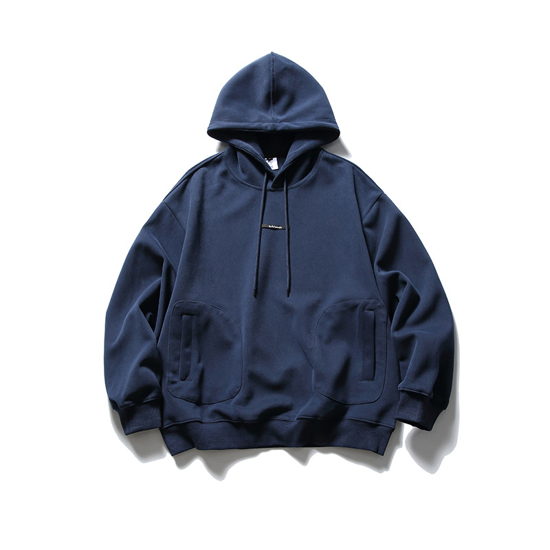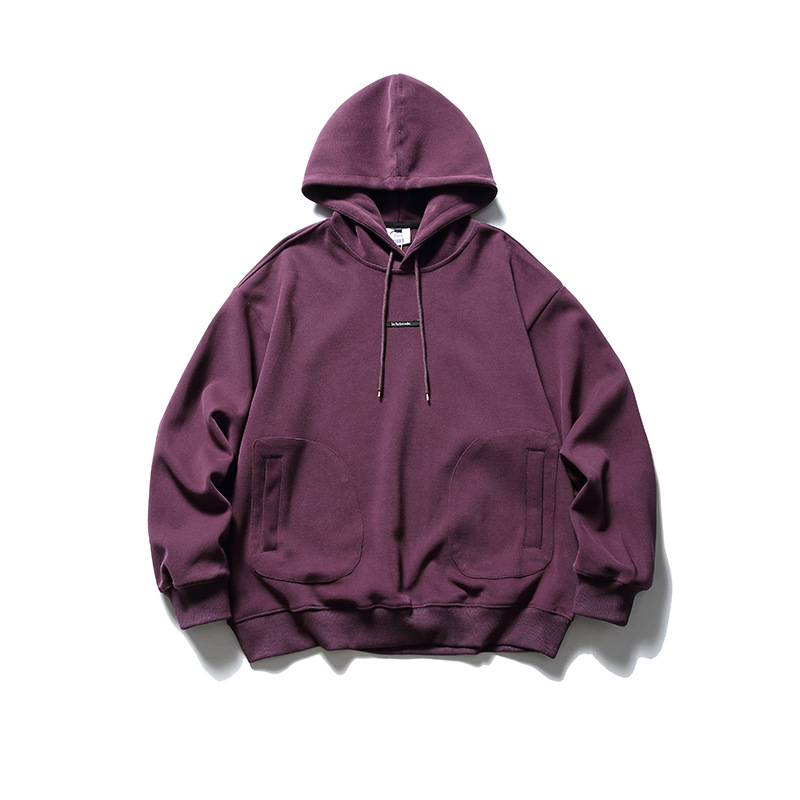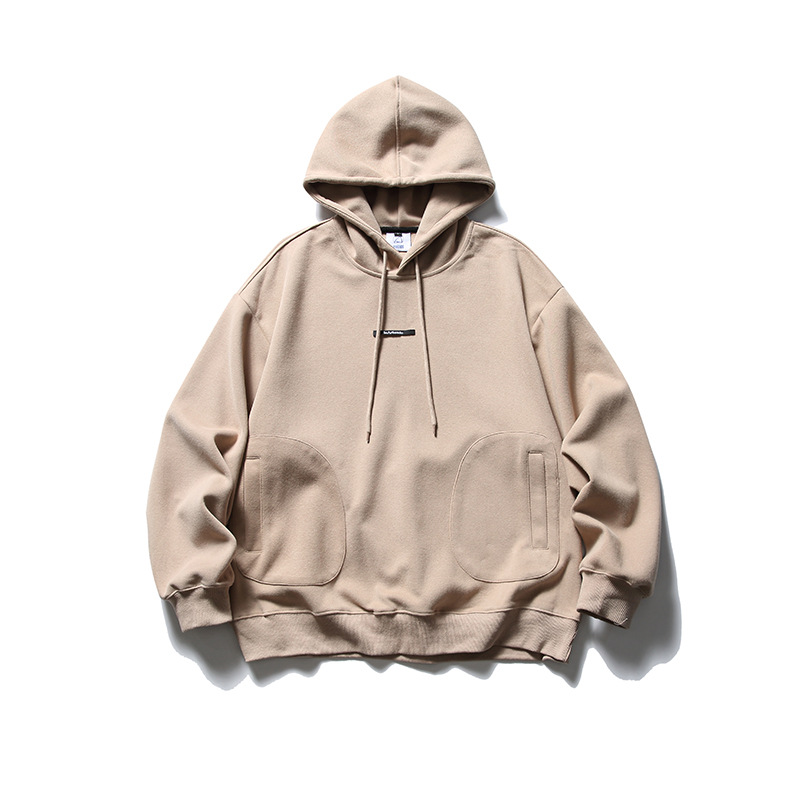 Japanese Fashion Brand Street Solid Color Top Badge Loose Drawstring Hoodie