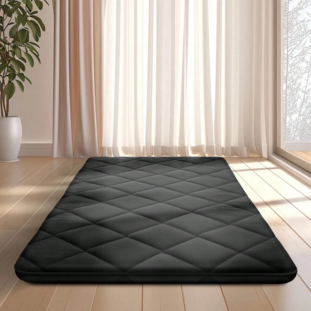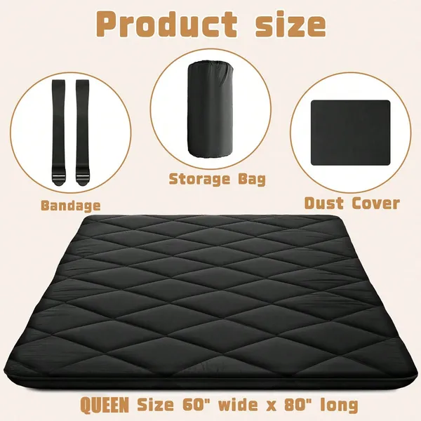 Japanese Floor Mattress, 100% High Density Comfortable Foam, Thicken Foldable Mattress Tatami Mat Sleeping Pad, Ideal For Comfort And Support, Floor Lounger Pillow Bed Sofa, Black, Queen 60*80