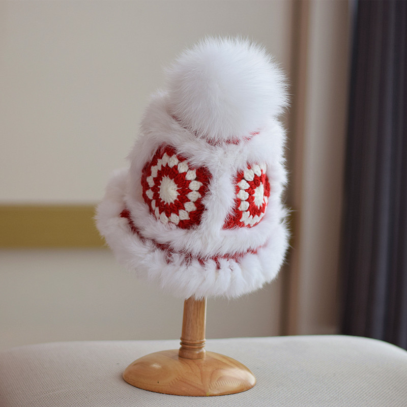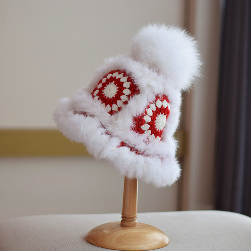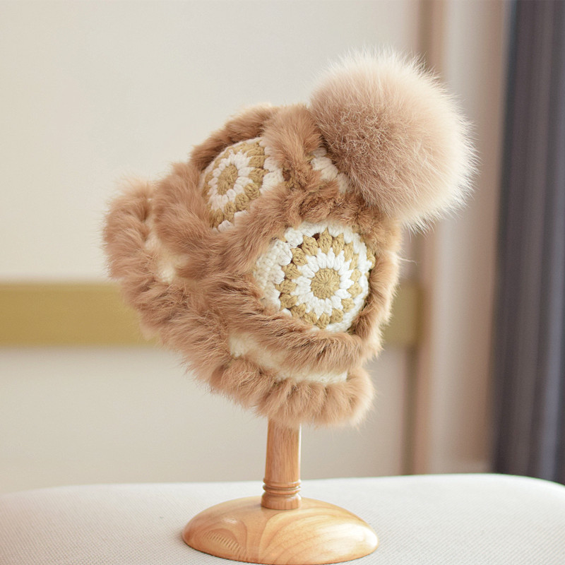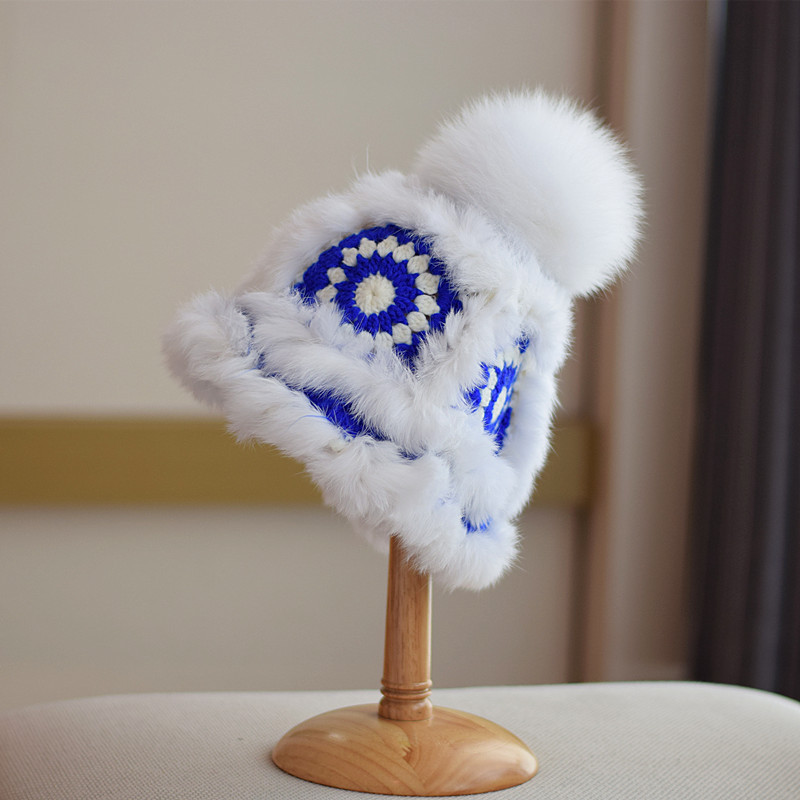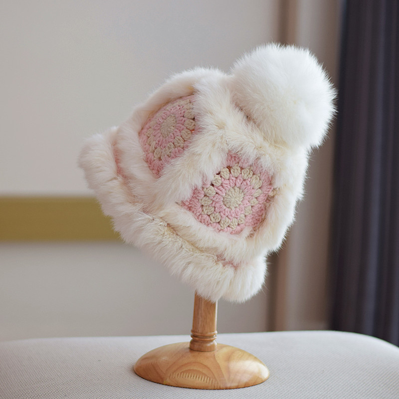 Japanese Fox Fur Ball Rabbit Fur Knitted Autumn And Winter Warm Plush Tiger Hat