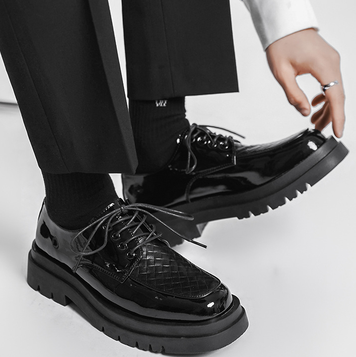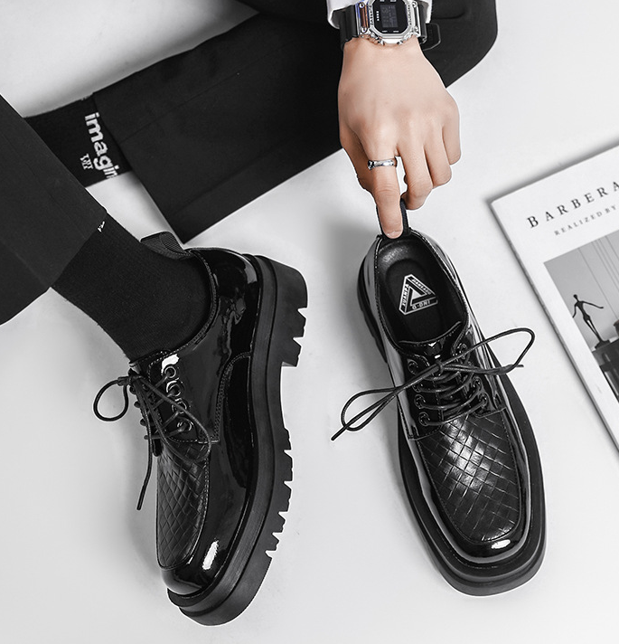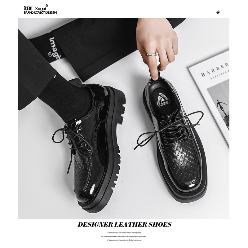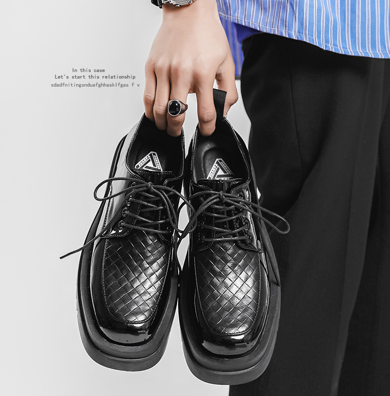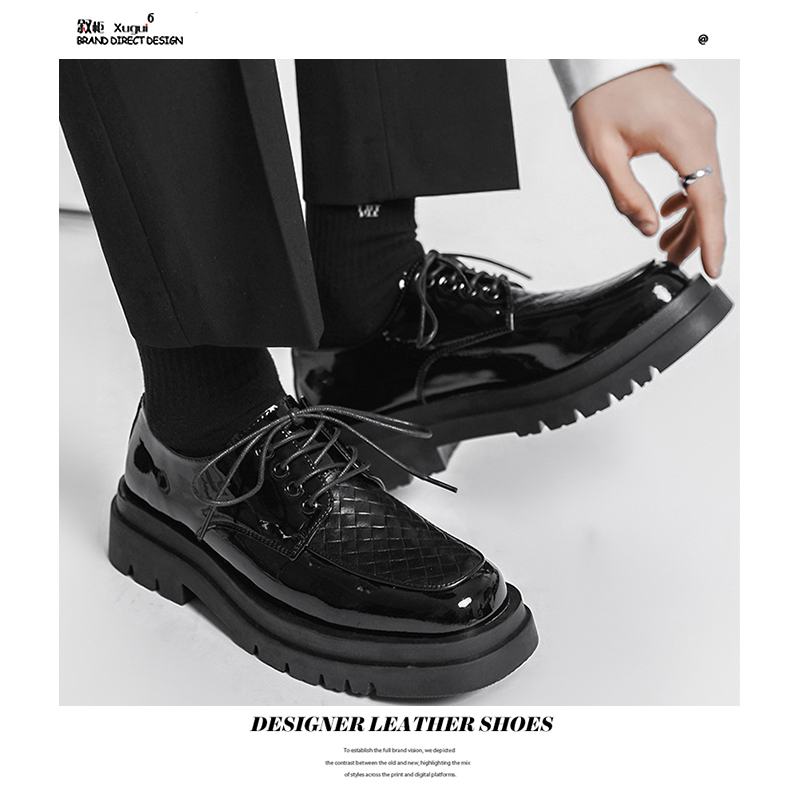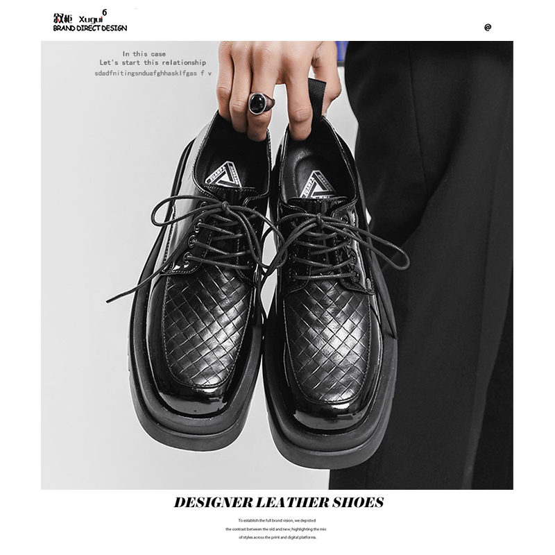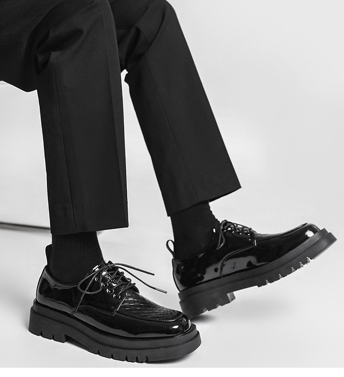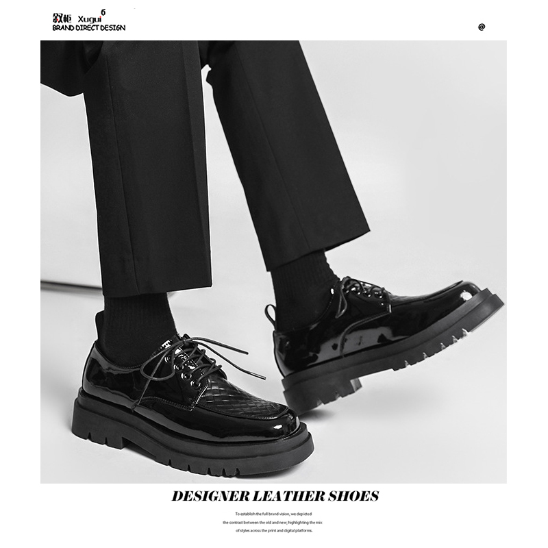 Japanese Leather Shoes Men'S Summer Retro Trend Wild Black Single Shoes Lace-Up Increased Casual Men'S Shoes British Loafers