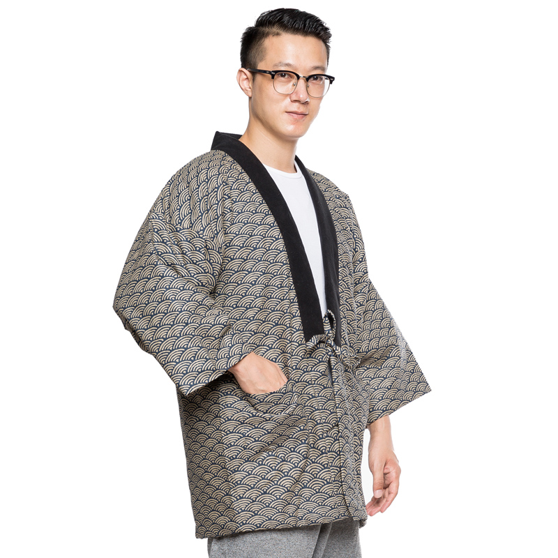 Japanese Men's Winter Kimono Cotton Jackets Halloween Coustume Japanese Samura Warm Cotton Kimono Coat Indoor Outdoor Kimono Coat Traditional Japanese Kimono For Men Lightweight & Warm Kimono