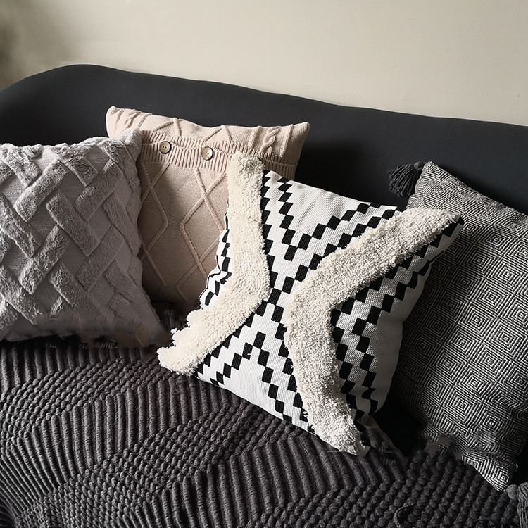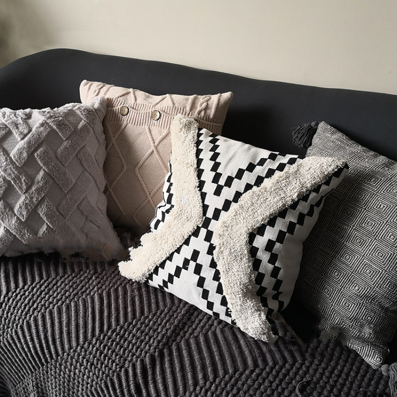 Colour: Colour: light grey plush (pillowcase) black and white geometric (pillowcase) taupe tassel (pillowcase) simple colour block (pillowcase)