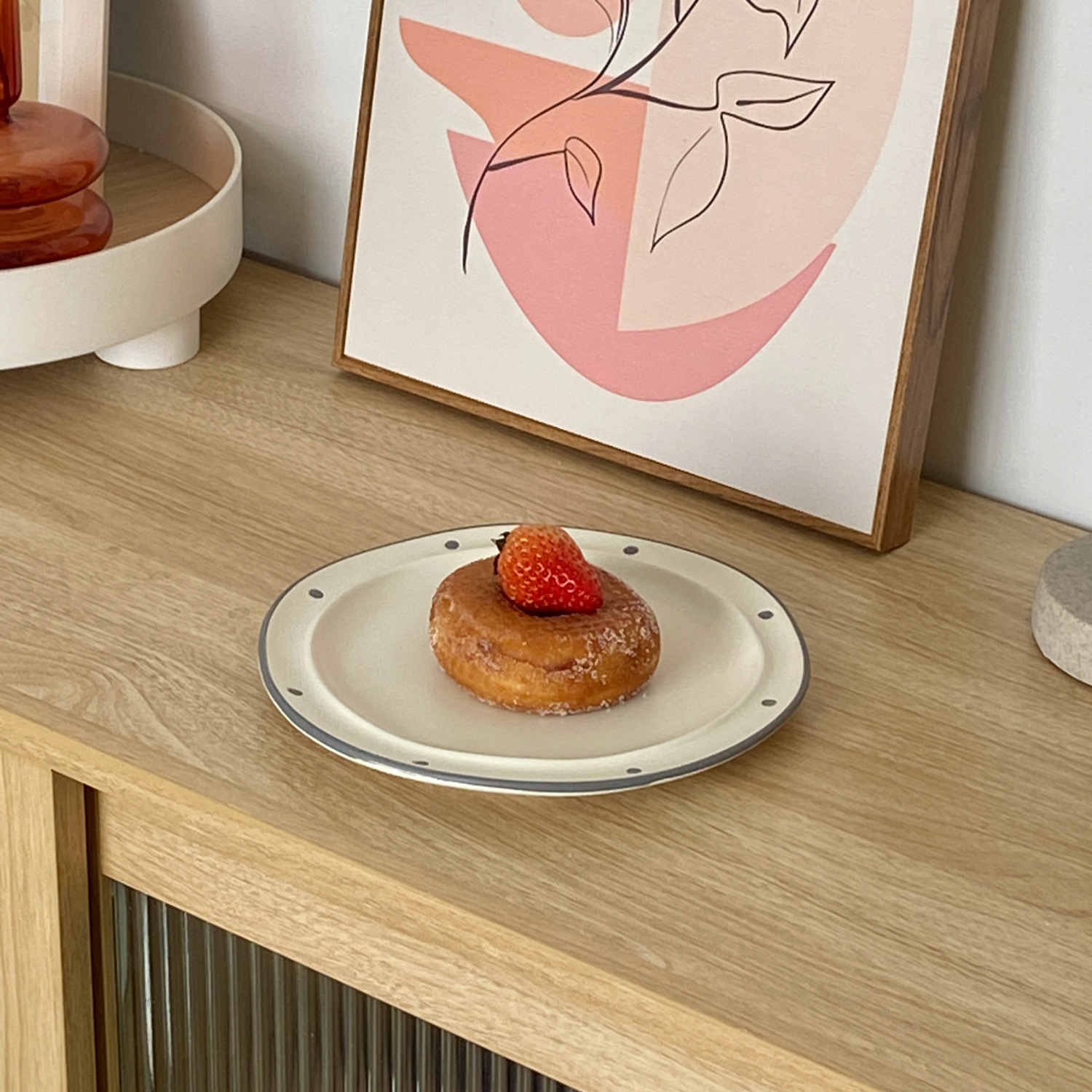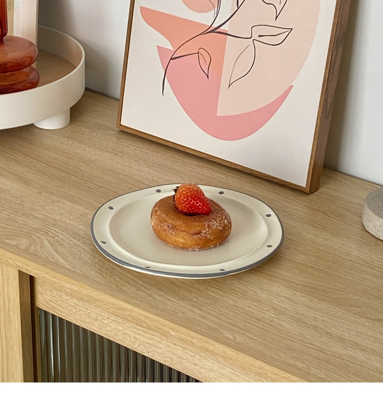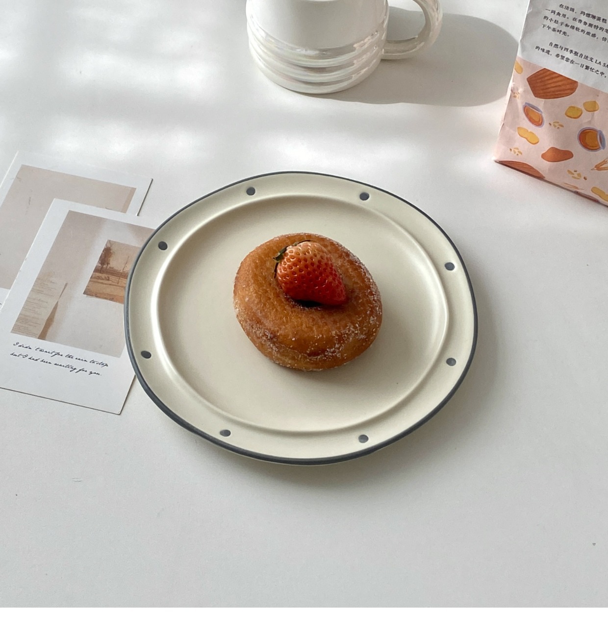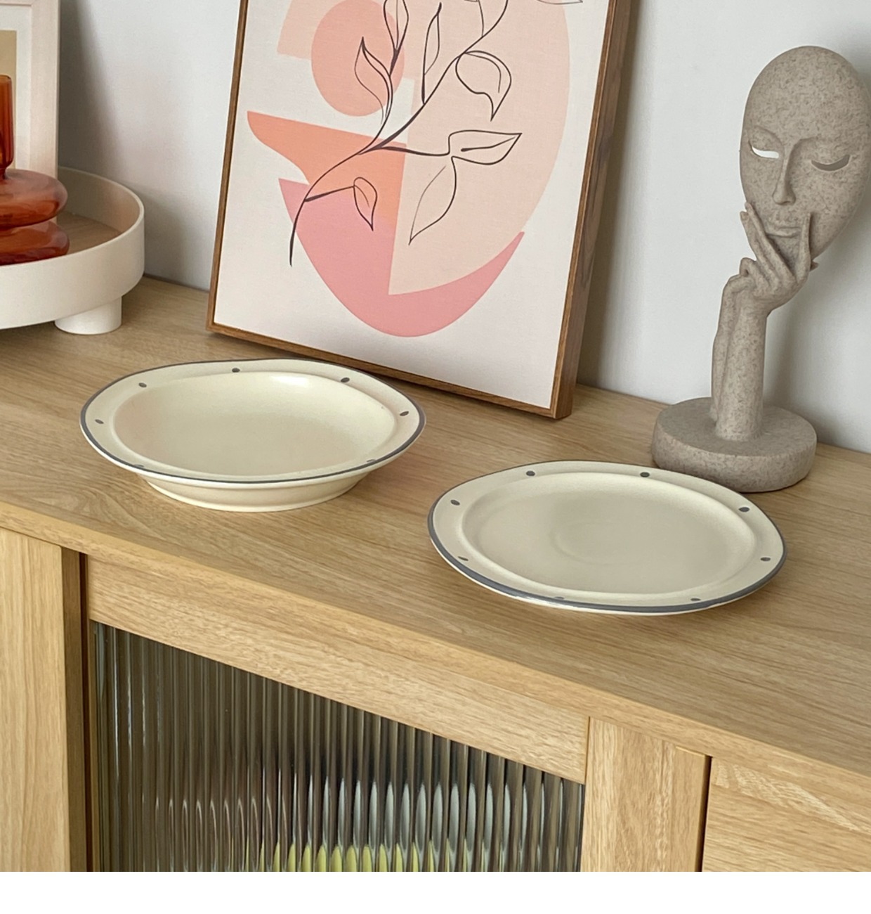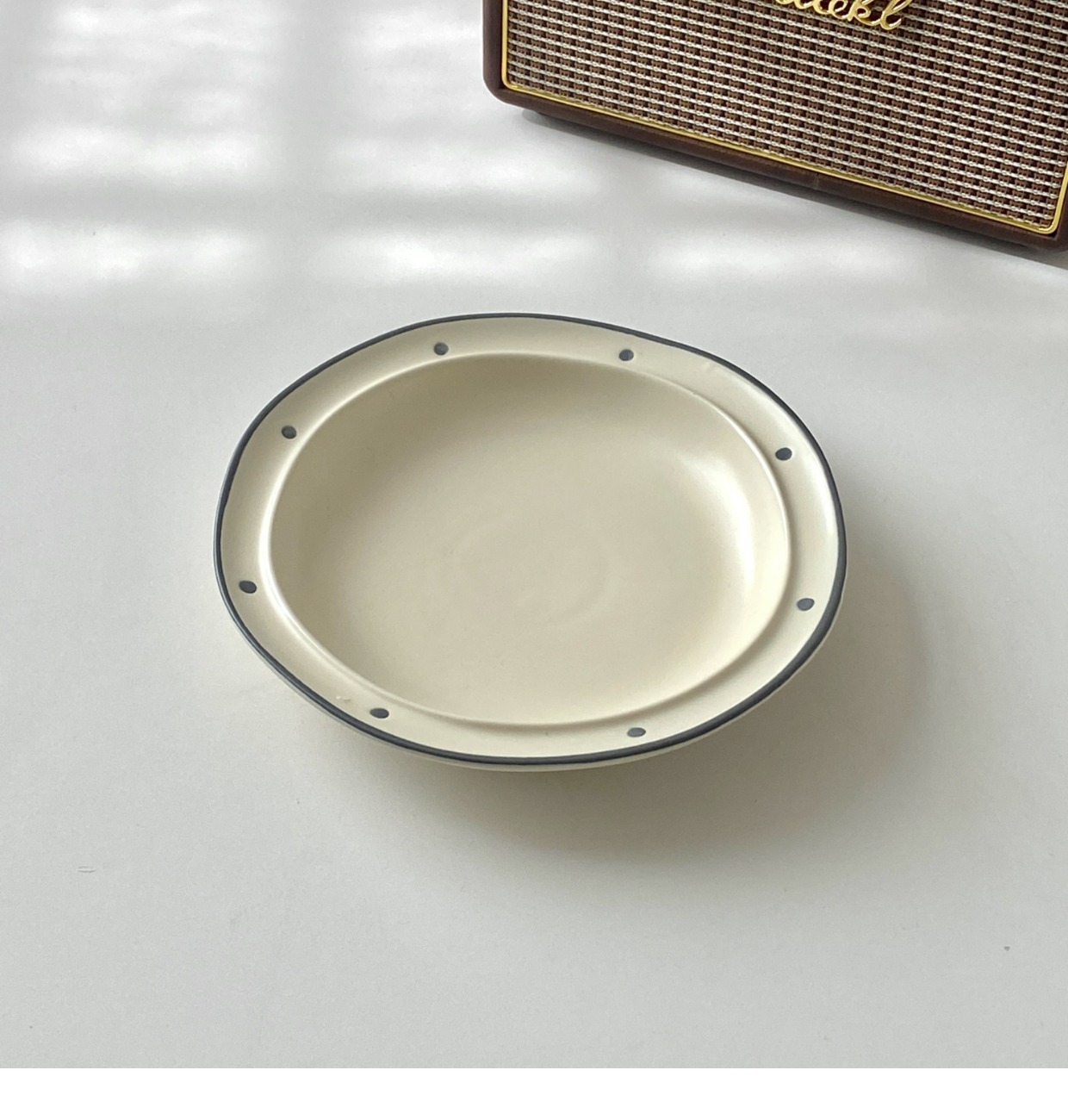 Color: 8.5-inch round soup plate with milky white dots, 8.5-inch round platter with milky white polka dots