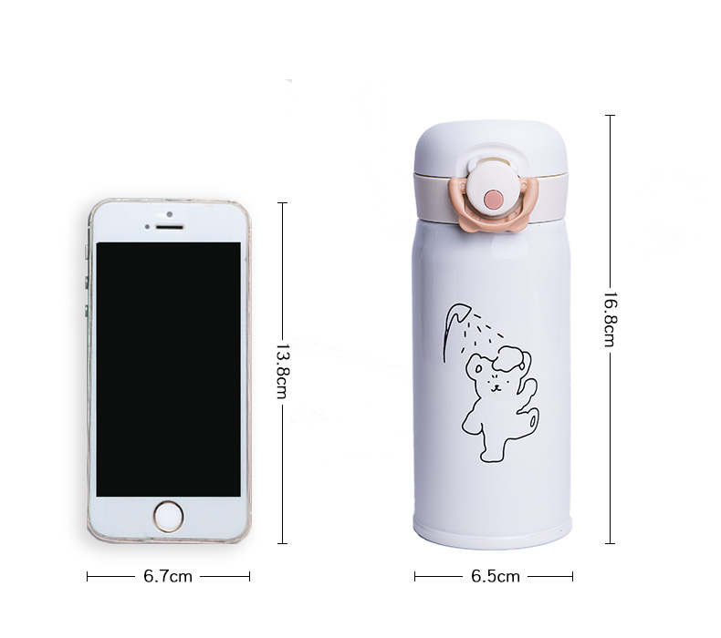 Simple Japanese style cup, small body, easy to carry when going out. The inner tank is made of 304 stainless steel, the lid is food-grade PP plastic, the capacity is 350ml, the diameter of the cup mouth is 4.5cm, and the heat preservation time is 6 to 12