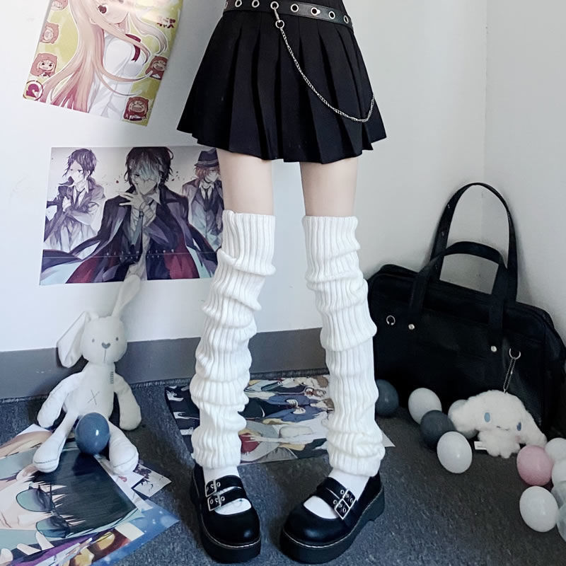 K: Vertical stripe socks - long - white