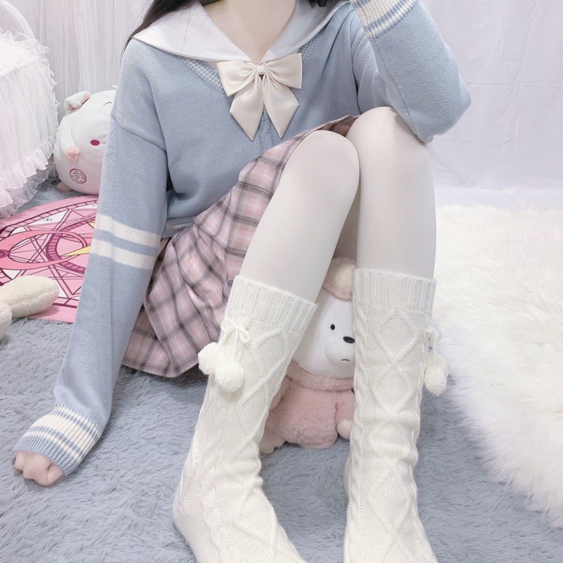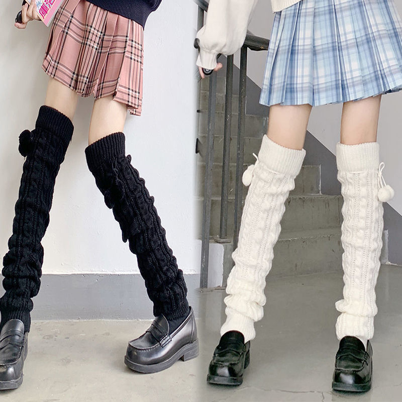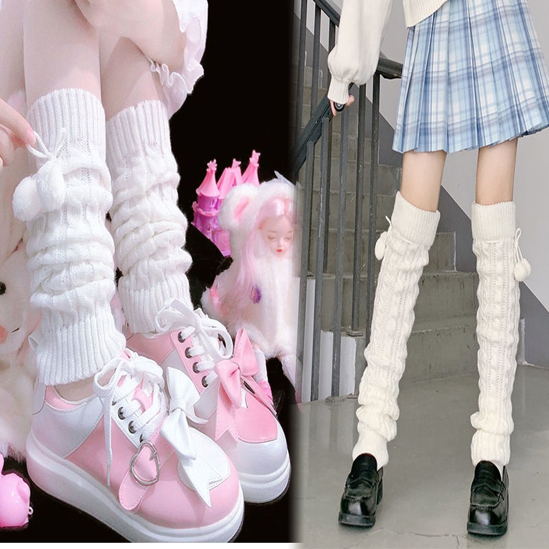 O: White wool ball socks - long+short (two pairs)