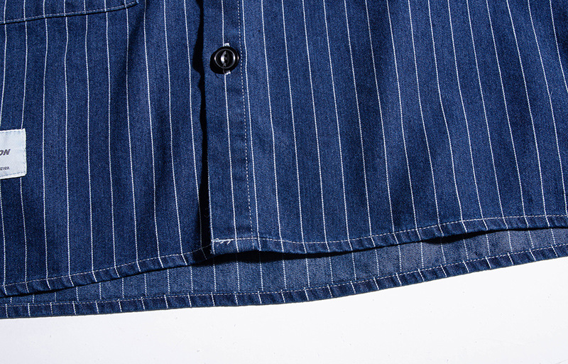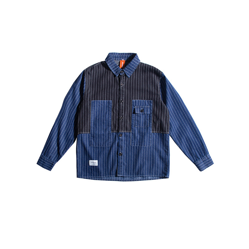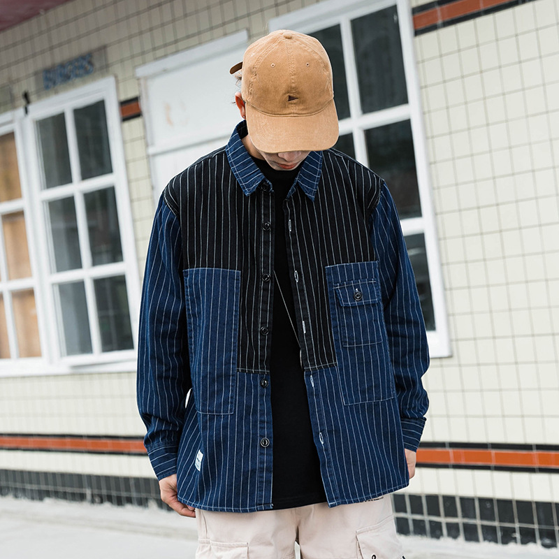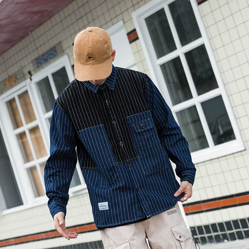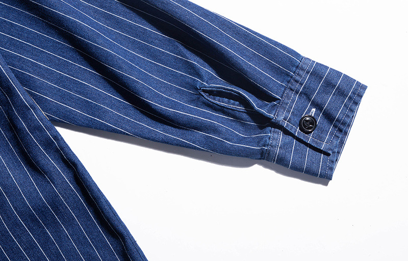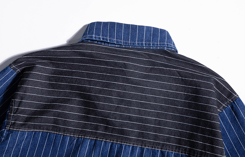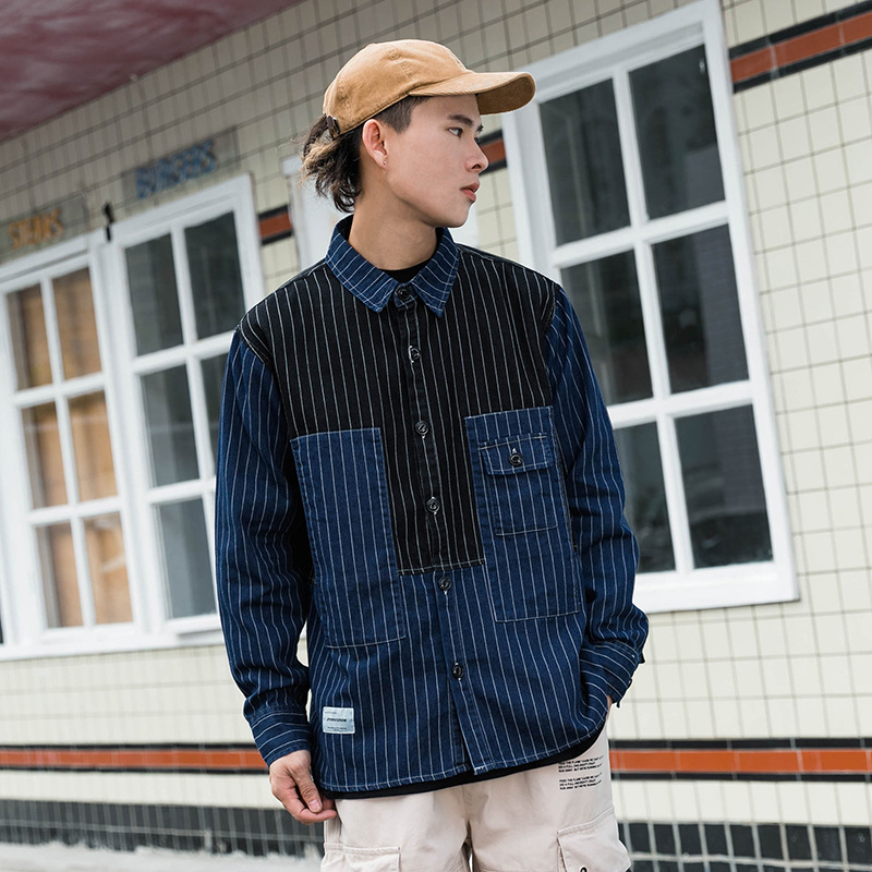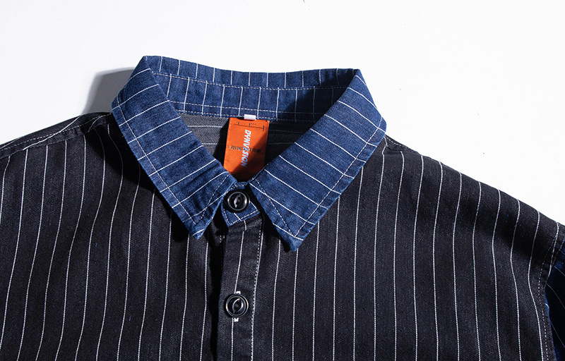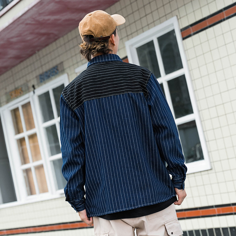 Japanese Style Autumn Striped Denim Shirt Men's Long Sleeve Loose