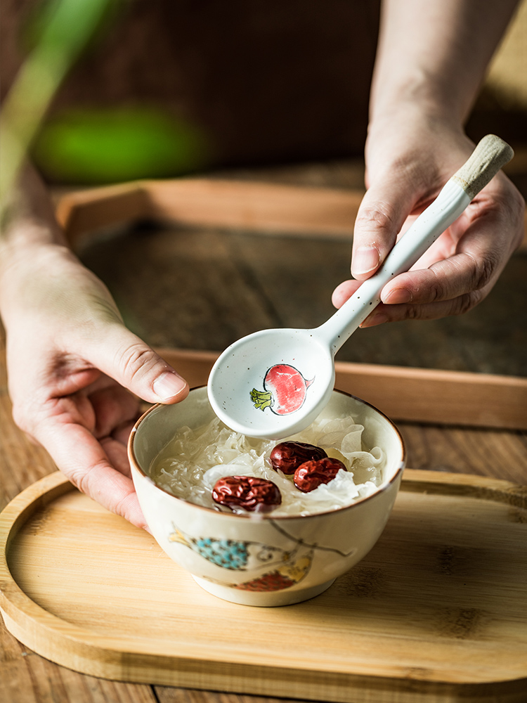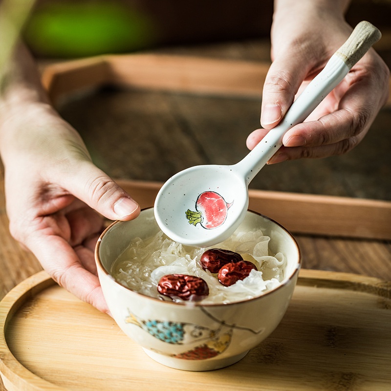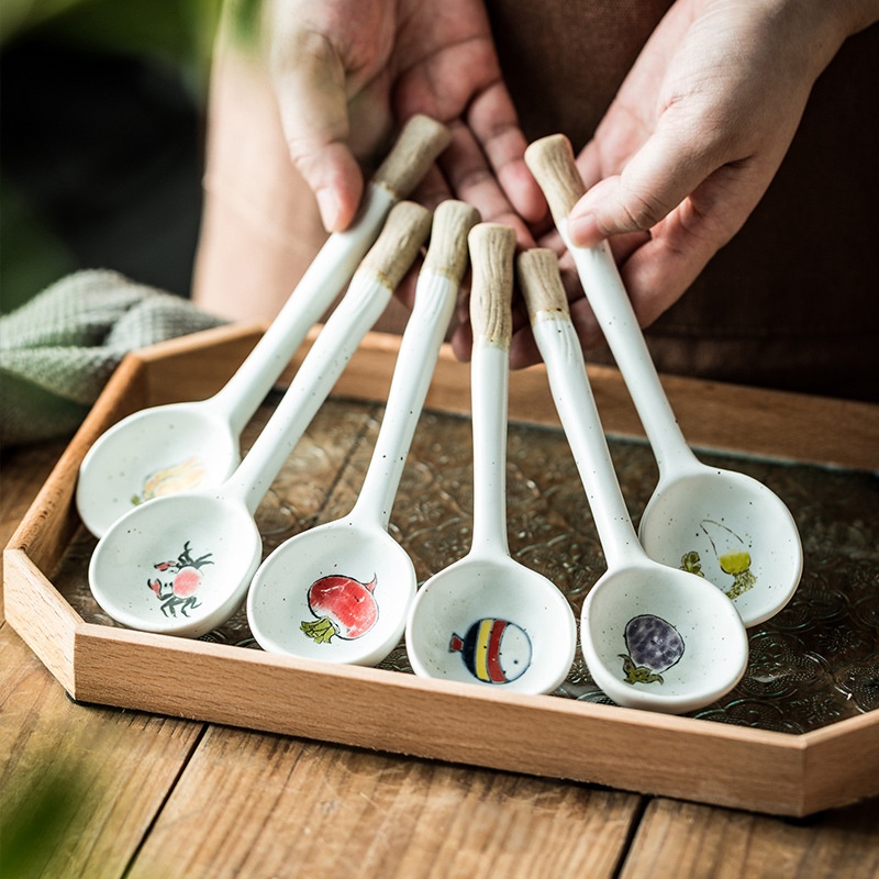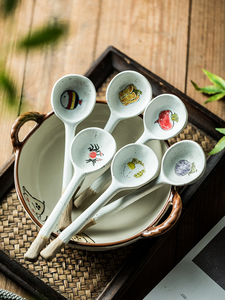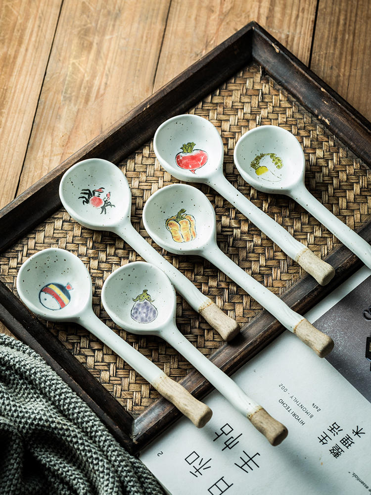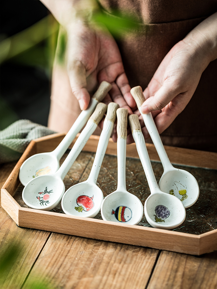 Color: stoneware long handle spoon-yellow pepper, stoneware long handle spoon-eggplant, stoneware long handle spoon-crab, stoneware long handle spoon-thin radish, stoneware long handle spoon-Fat Radish, stoneware long handle spoon-small fish