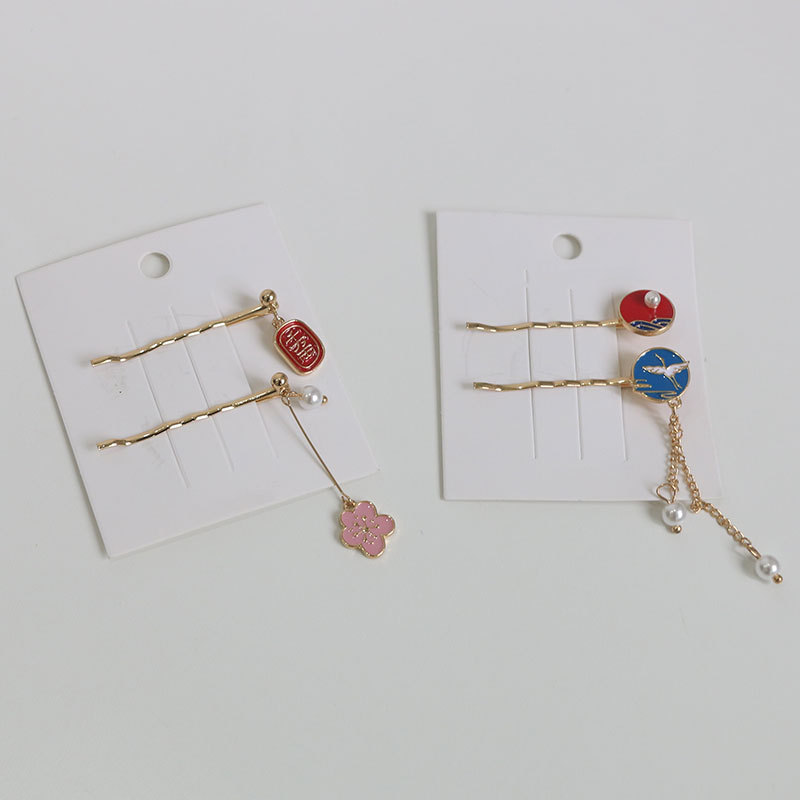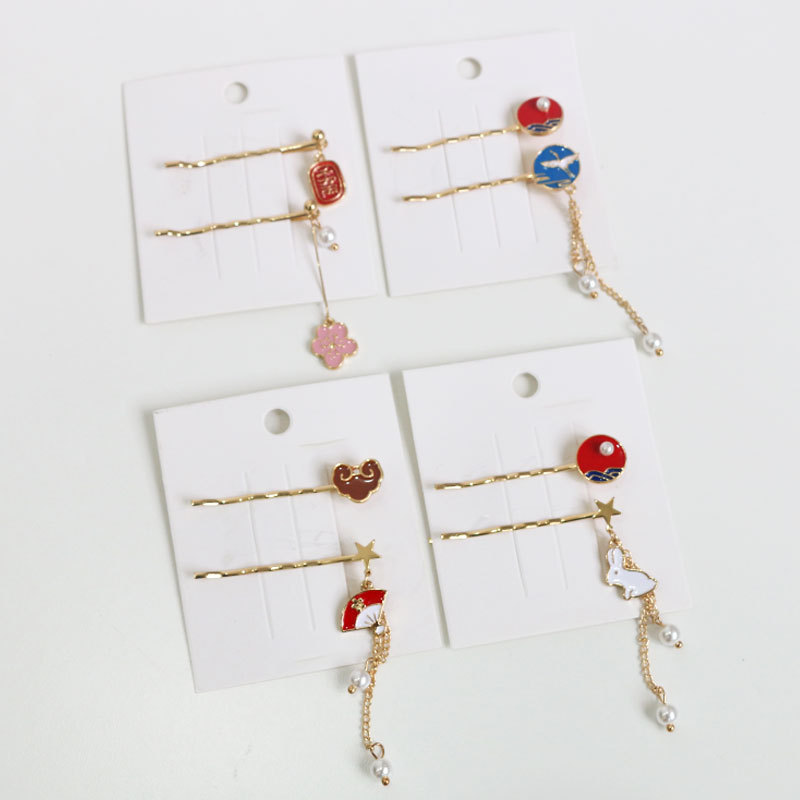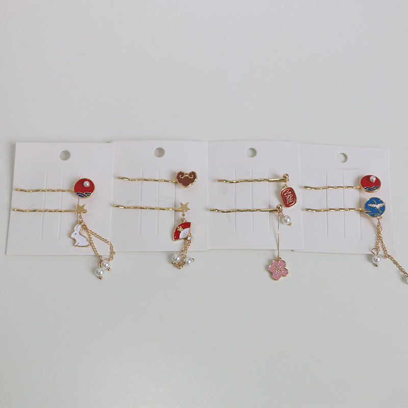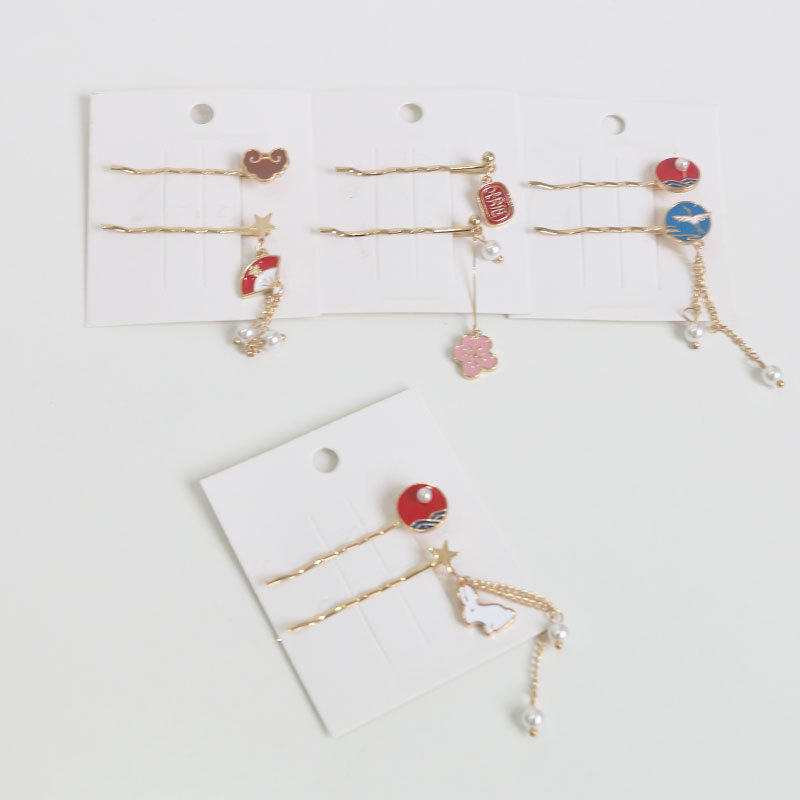A set of cherry blossoms, a set of cranes, a set of fans, a set of rabbits