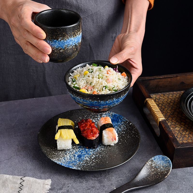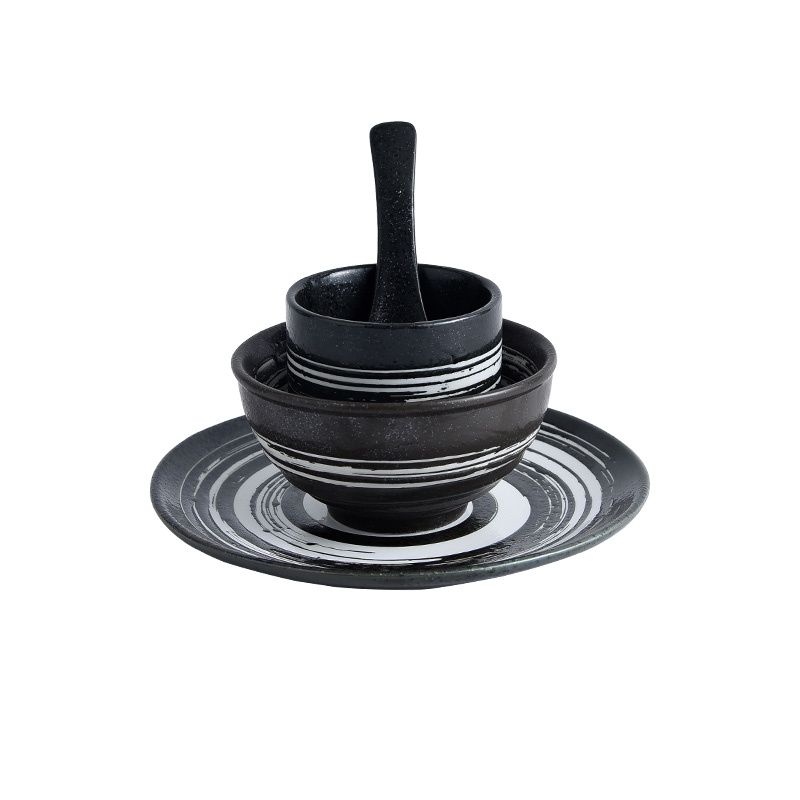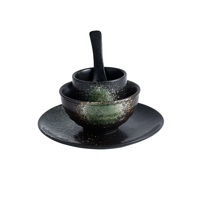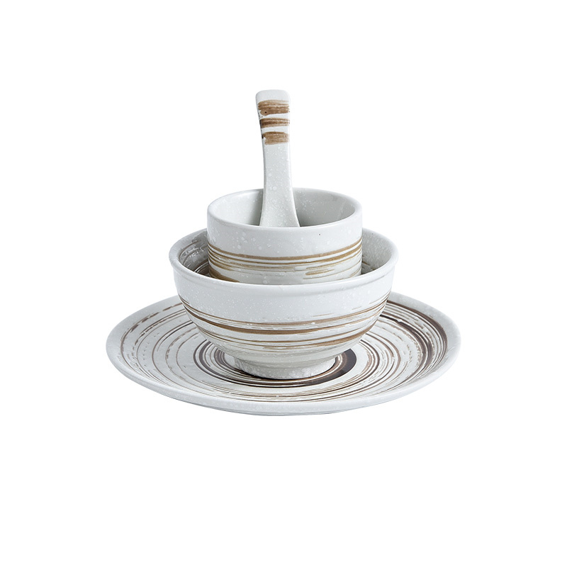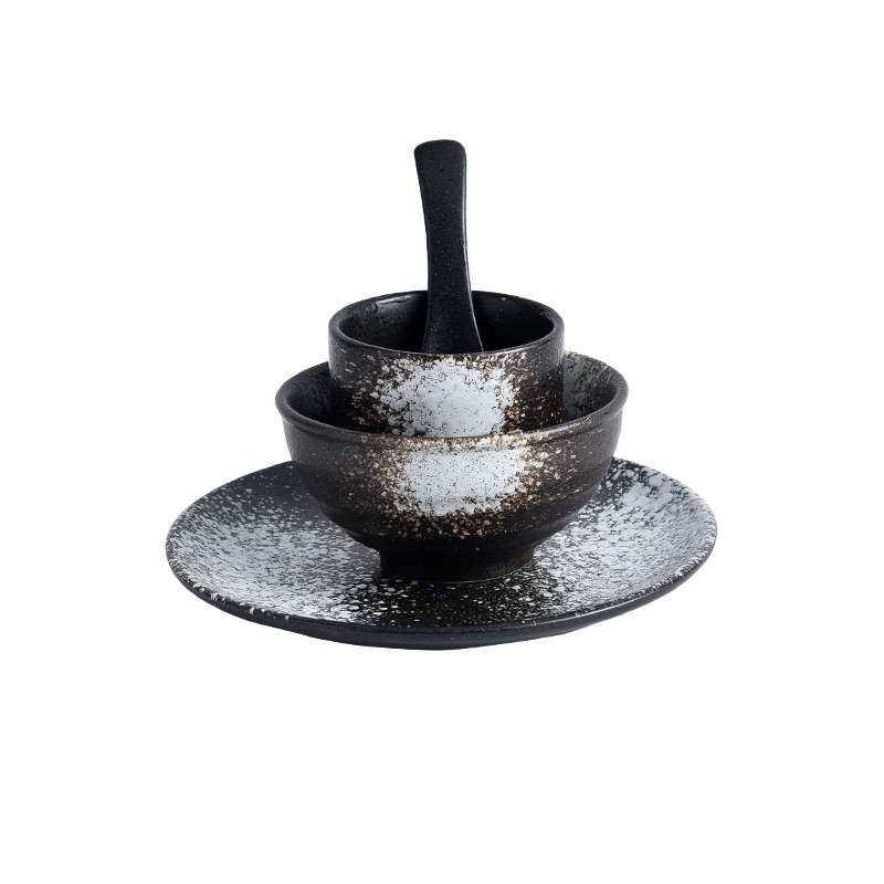 Dish + bowl + spoon/dish + bowl + spoon + cup