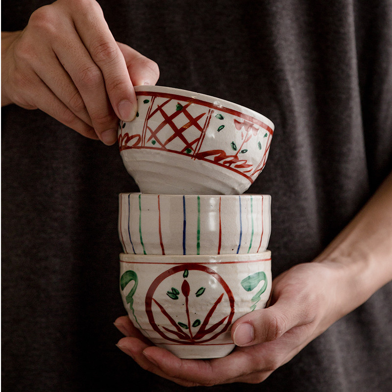 Japanese Style Household Handmade Ceramic Rice Bowl Hand-painted Pattern