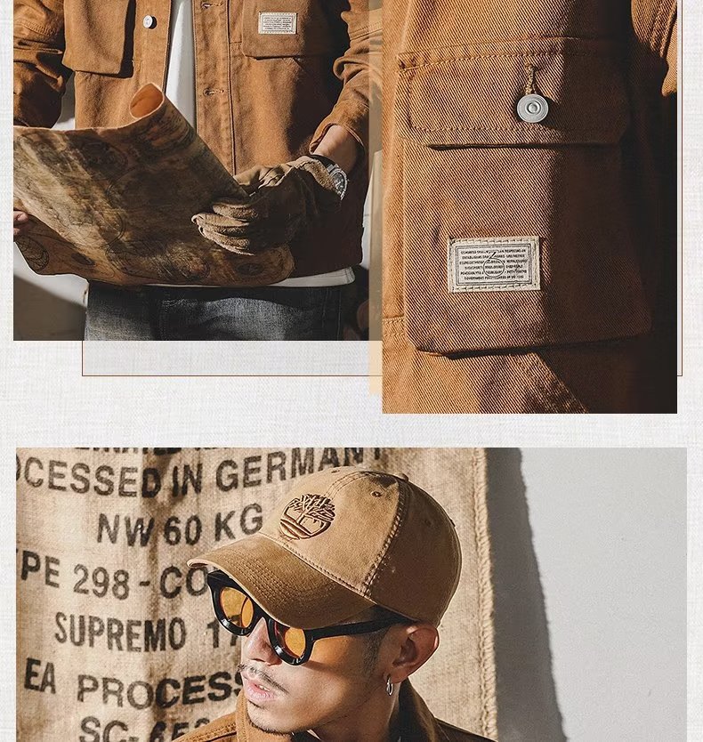 Japanese-style Retro Casual Polo Collar Workwear Khaki Coat