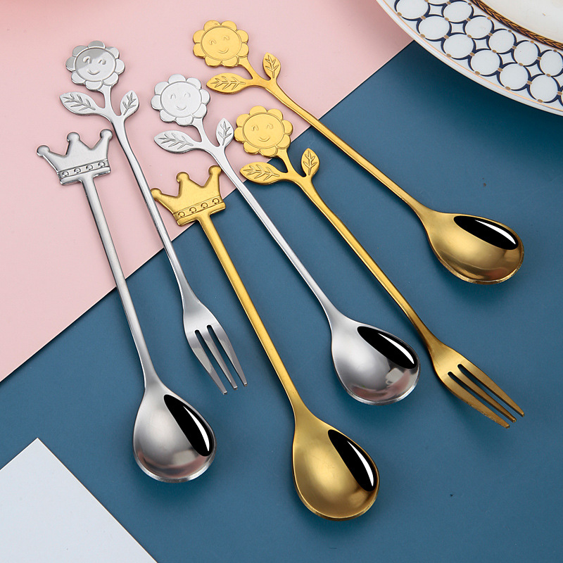 Color: Sun Flower Spoon-Natural Color, Sun Flower Spoon-Gold, Sun Flower Fork-Natural Color, Sun Flower Fork-Gold, Crown Spoon-Natural Color, Crown Spoon-Gold