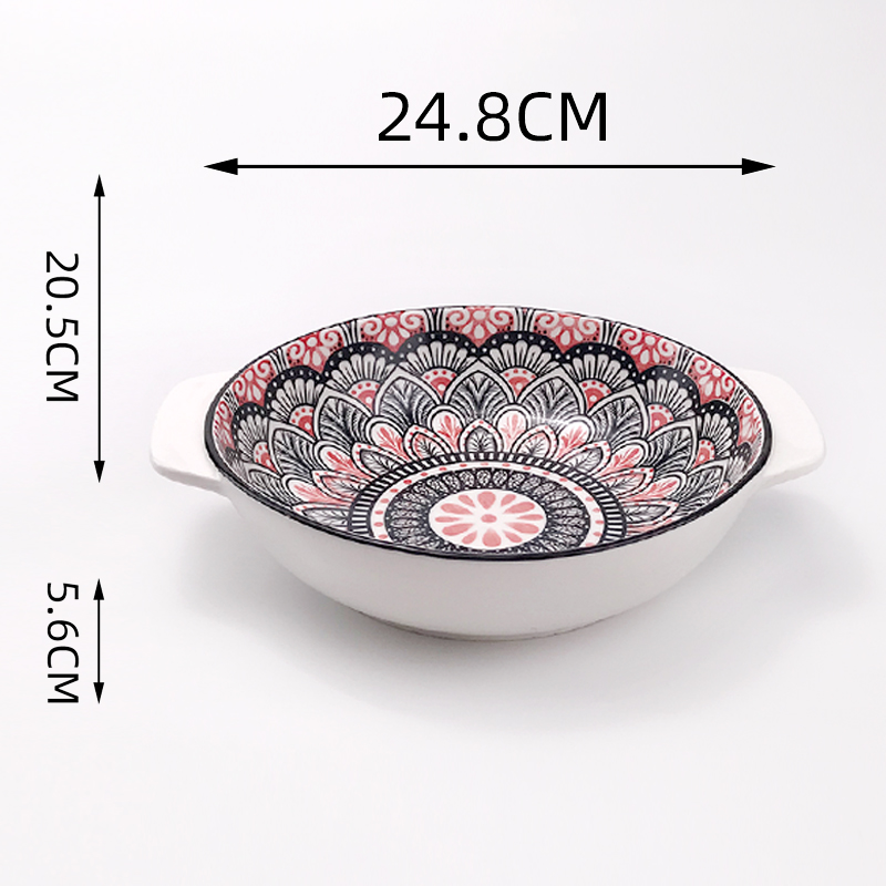 Color classification: 4.25" handle plate 4.75" rice bowl 8" noodle bowl 8" soup plate 9" single handle plate 9" binaural round plate 9.25" square binaural plate 9.75" round soup bowl 10.75 round soup bowl 11" double 13" double ear rectangular plate