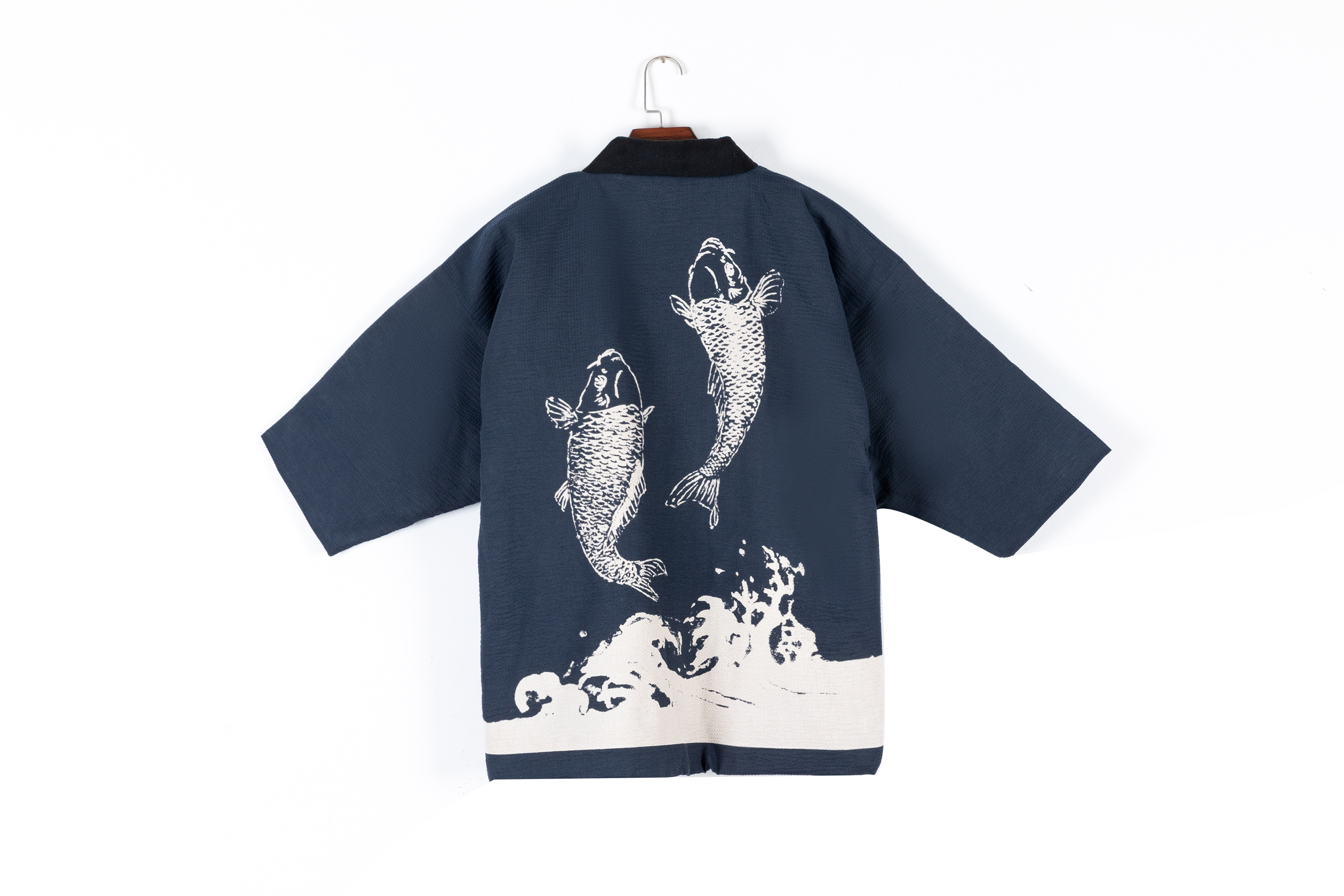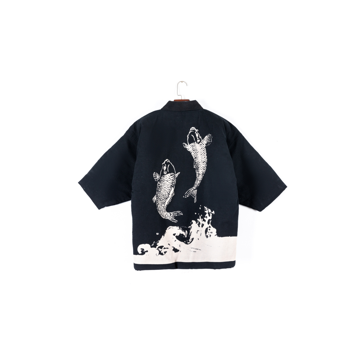 Japanese Traditional Koi Print Kimono Cardigan Thick Cotton Jacket Coat Outerwear Yukata Home Clothes Men Loose Pajamas