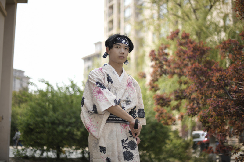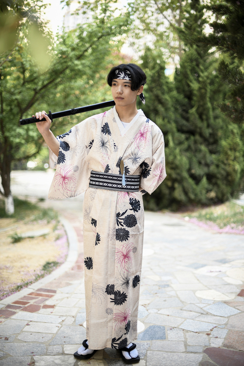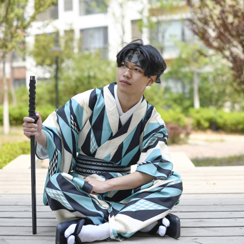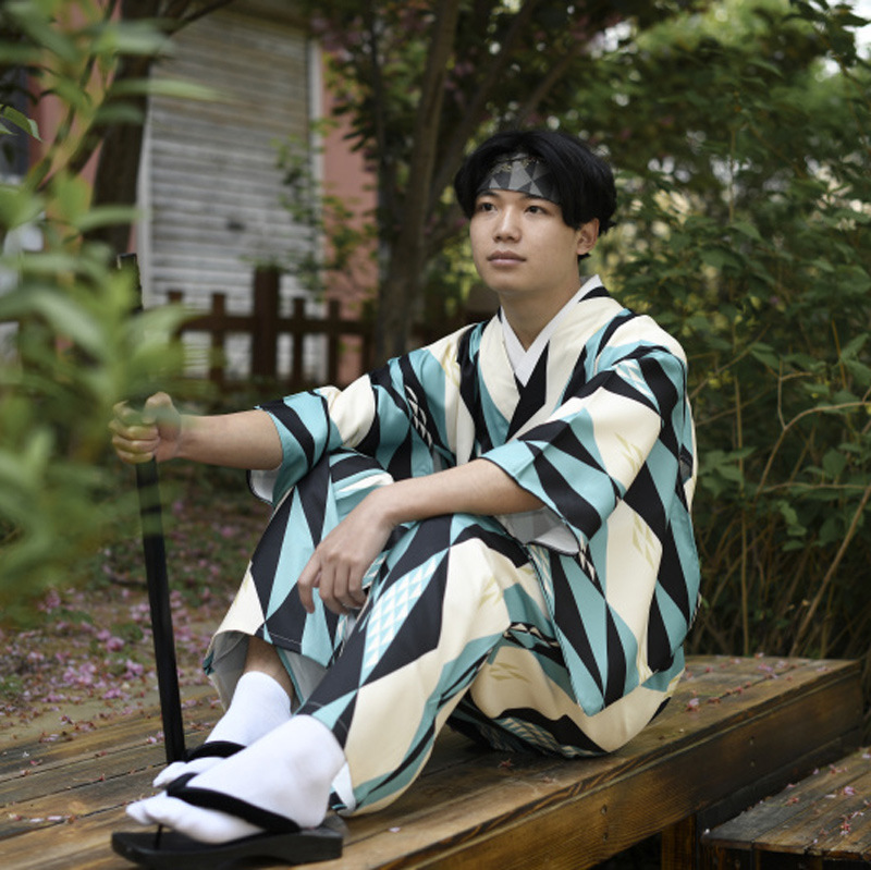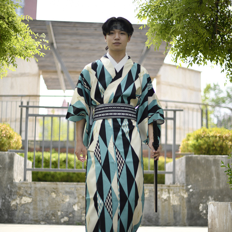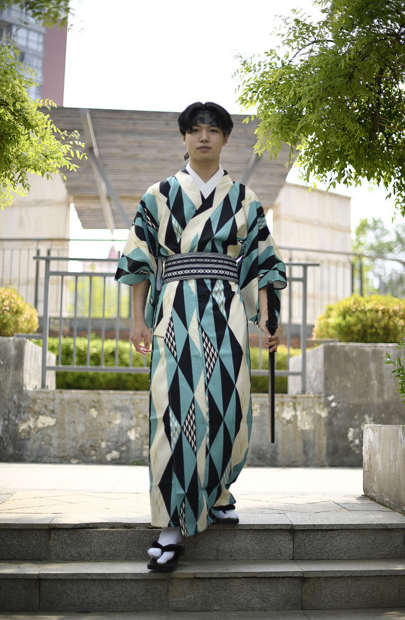 Color: Beige gray chrysanthemum, blue water pattern, green triangle