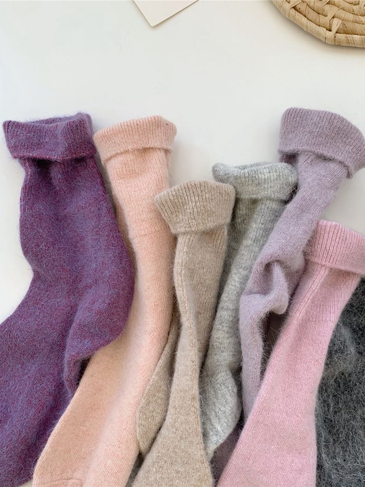 Japanese Winter Solid Color Thickened Warm Rabbit Wool Socks
