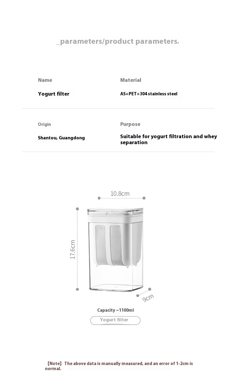 Specifications: yogurt filter [1100ML], yogurt filter [1800ML]]