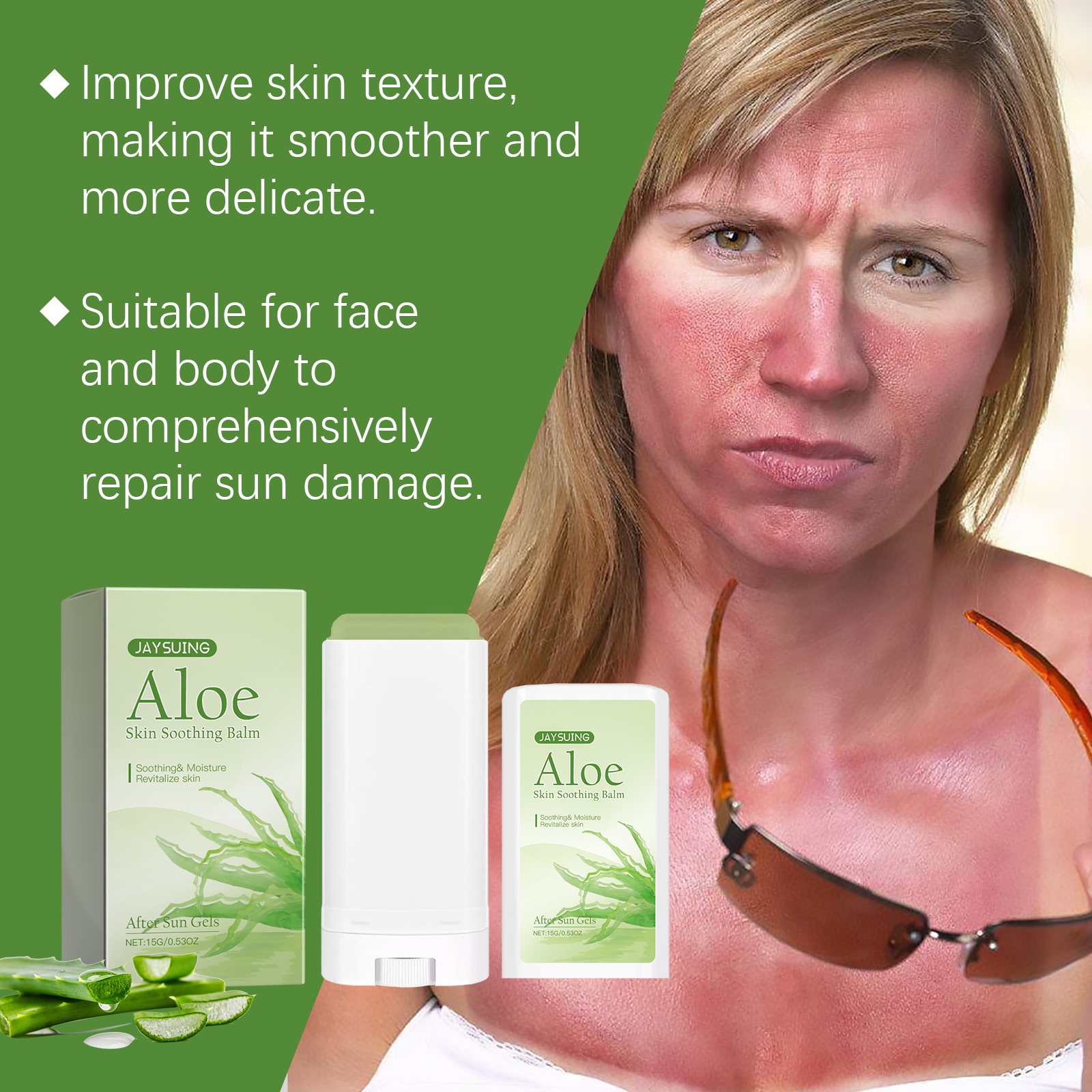 Our aloe Vera repair sticks contain macadamia seed extract, tocopherol. It deeply nourishes the skin and keeps it moisturized. Its application method is simple: thoroughly clean dry skin, turn the base plate to evenly apply the sunscreen stick to the face, hands, legs or other sunburned or red skin parts of the body, gently massage with your hands to help better absorption. It can quickly repair sunburned skin and relieve the burning sensation.