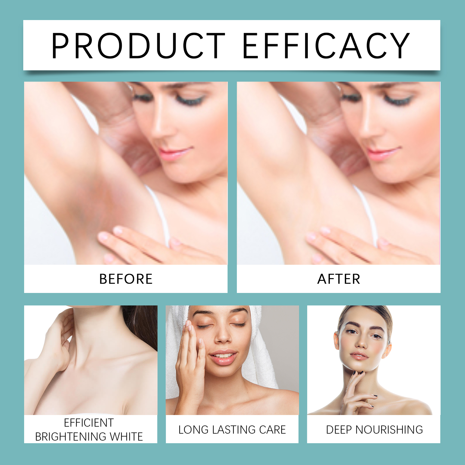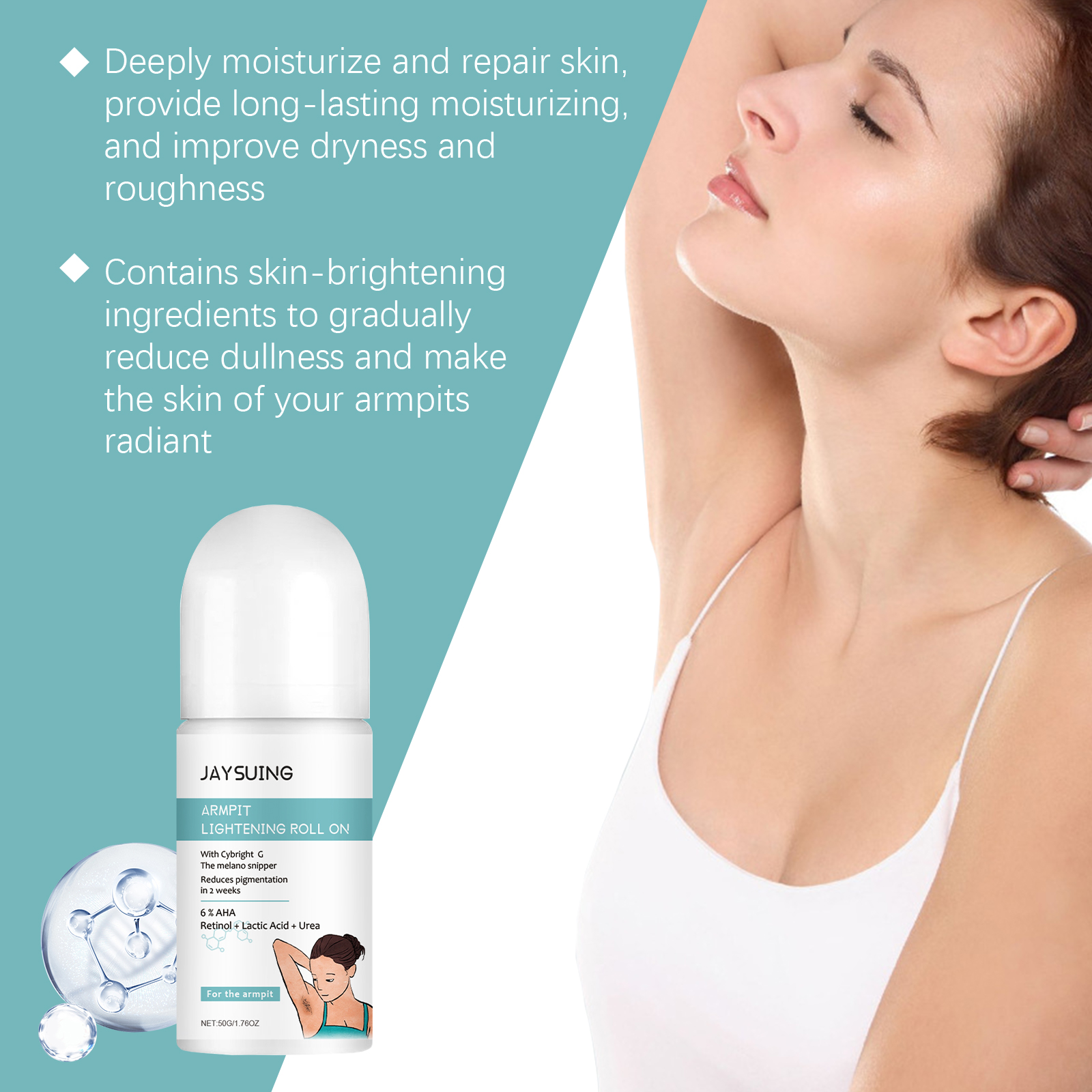 Our armpit beauty balls contain lactic acid, retinol, and tea tree oil. It can reduce armpit pigmentation and whiten armpit skin within 2 weeks. It can effectively exfoliate and smooth underarm skin. Its application method is simple: 1. Thoroughly clean and dry the underarm skin; 2. Let the ball roll evenly, so that the product evenly spread on the armpit skin; 3. Gently massage until fully absorbed. Compact and lightweight packaging design makes it easy to carry and perform skin care; Contains a variety of plant extracts, safe and gentle, suitable for all skin types anytime, anywhere.