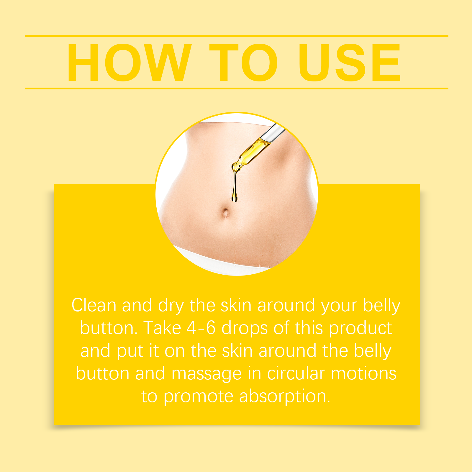 Our body care essence contains mineral oil, Jojoba seed oil and rosemary leaf oil. It can build a protective layer for the skin. It feels very comfortable to use and brings you a pleasant feeling. Its usage method is very simple: Clean and dry the skin around the navel. Take 4 to 6 drops of this product, apply it to the skin around the navel, and massage in a circular motion to promote absorption. And effective nutrition can bring about significant improvements.