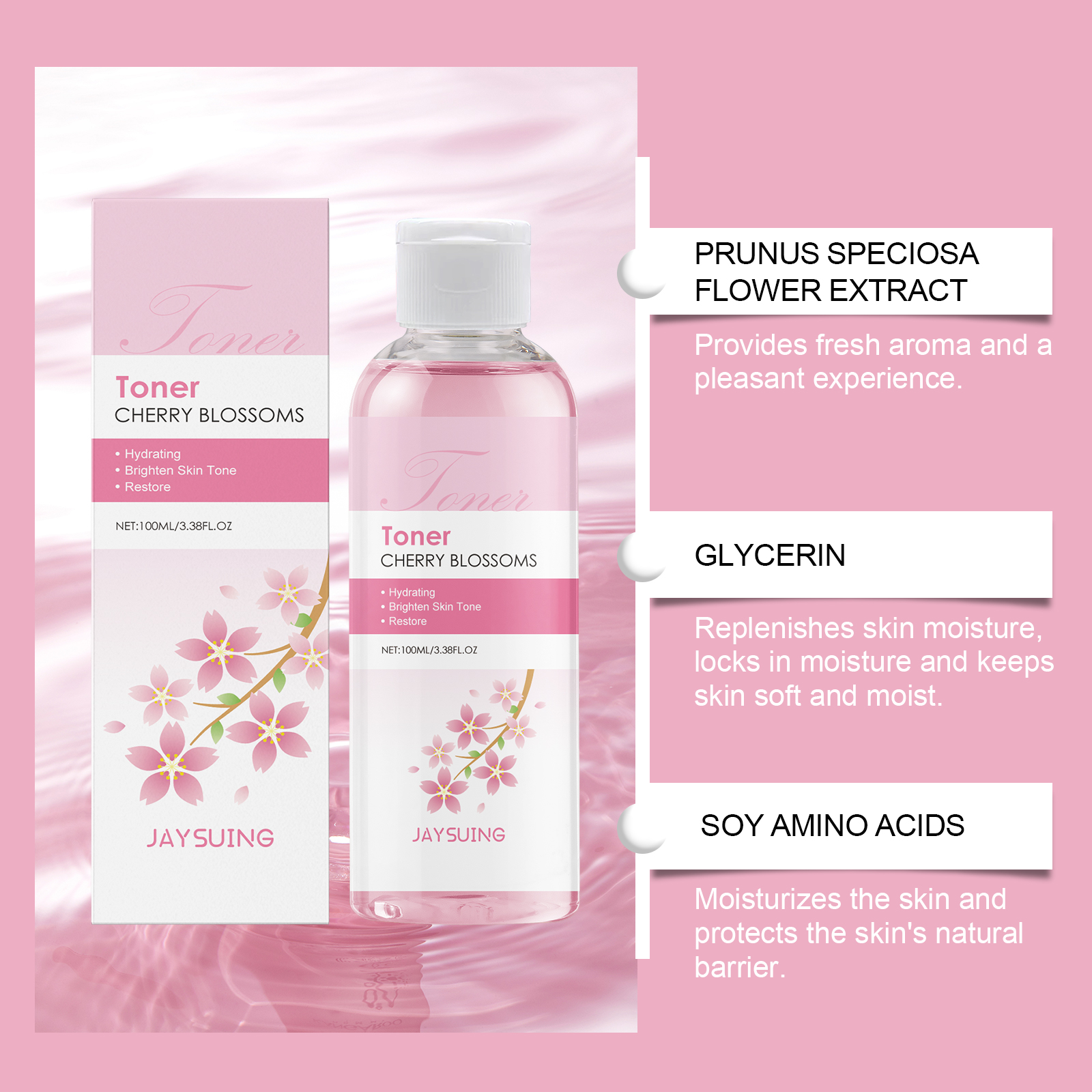 Jaysuing Cherry Blossom Hydrating Toner Hydrates And Moisturizes And Brightens Skin Refreshing Skincare Essence Water