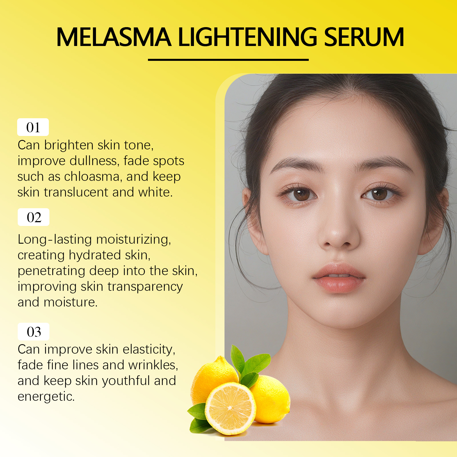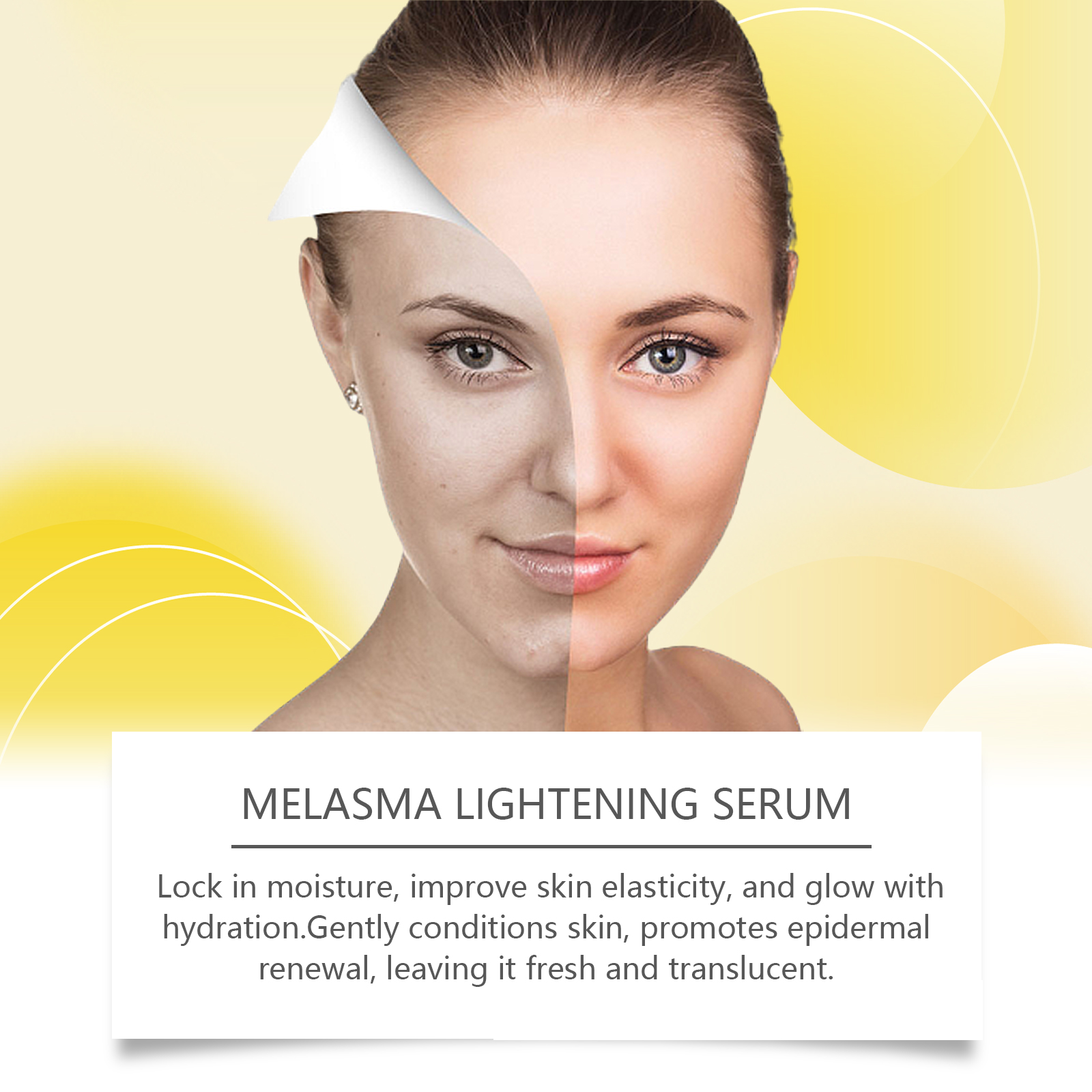 Our facial skin tone repair essence is carefully formulated with glycerin, hyaluronic acid and niacinamide. Specially designed to promote skin metabolism and accelerate the fading of chloasma. The usage method is extremely convenient: 1. Clean and dry the facial skin; 2. Take an appropriate amount of the essence and apply it evenly on your face. 3. Gently massage until fully absorbed. And it can lock in moisture, enhance skin elasticity, and make the skin glow with hydration. Gently regulate the skin, promote epidermal renewal, and make the skin fresh, bright and clear.